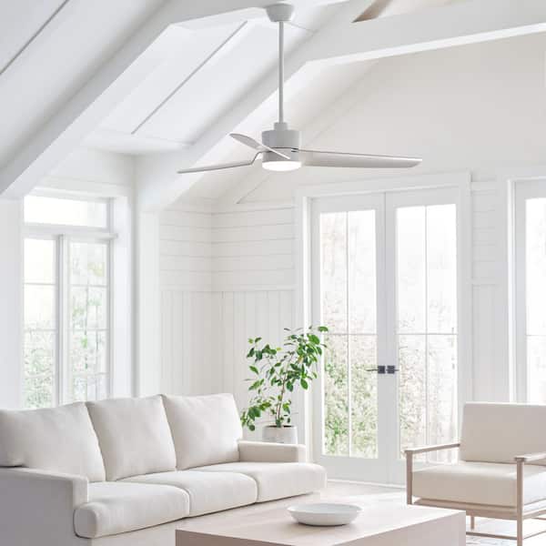 Colgin 56 in. Indoor/Outdoor Matte White Modern Standard Dowrod Mount Ceiling Fan with Integrated LED Light Kit