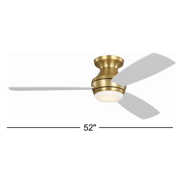 This modern ceiling fan adds a touch of sophistication to your space while keeping you cool and comfortable. With its sleek metal body and 3-blade design, it measures up to 52'', making it well-suited for small to large rooms. It features a 12-degree blade pitch for efficient air circulation, and it's designed for dry locations. We love that its integrated LED light kit is dimmable, allowing you to set the perfect ambiance in your room. An acrylic white shade diffuses the light, creating a soft glow. Best of all, this fan comes with a remote control for easy operation.