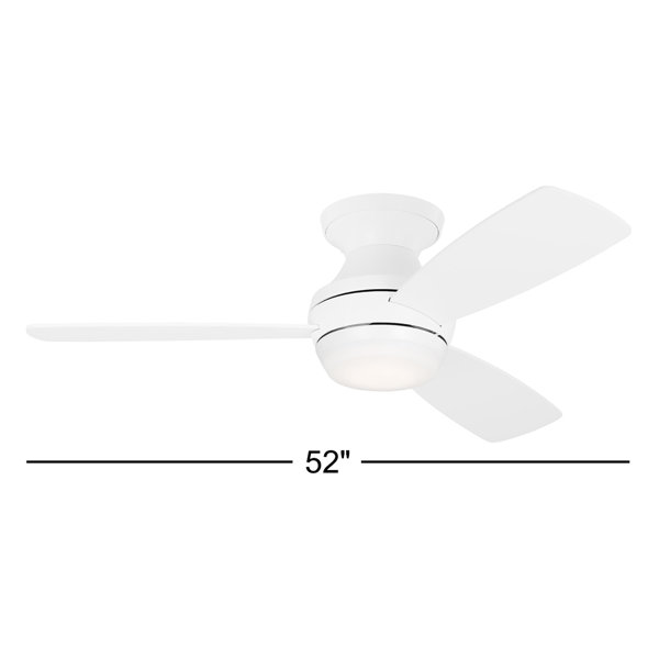 This modern ceiling fan adds a touch of sophistication to your space while keeping you cool and comfortable. With its sleek metal body and 3-blade design, it measures up to 52'', making it well-suited for small to large rooms. It features a 12-degree blade pitch for efficient air circulation, and it's designed for dry locations. We love that its integrated LED light kit is dimmable, allowing you to set the perfect ambiance in your room. An acrylic white shade diffuses the light, creating a soft glow. Best of all, this fan comes with a remote control for easy operation.