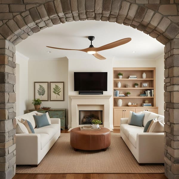 • Modern ceiling fan with hand-carved balsa wood blades