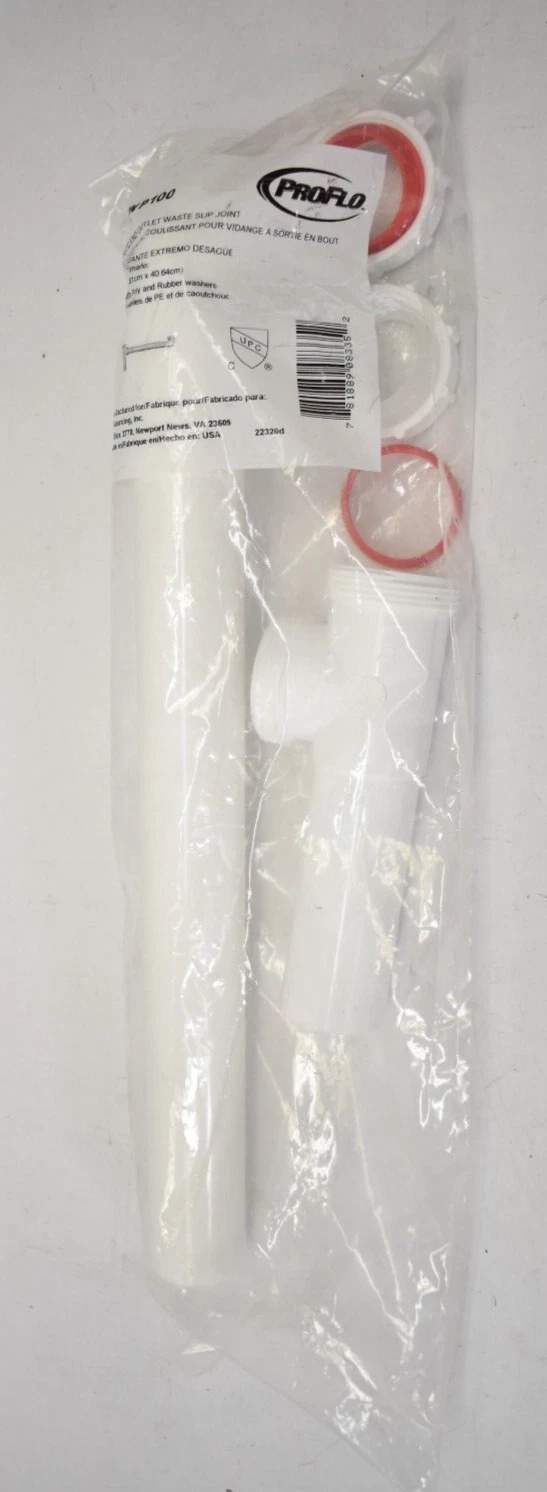 Proflo Plastic End Outlet Waste Slip Joint 1-1/2" X 16" PFEWP100 White