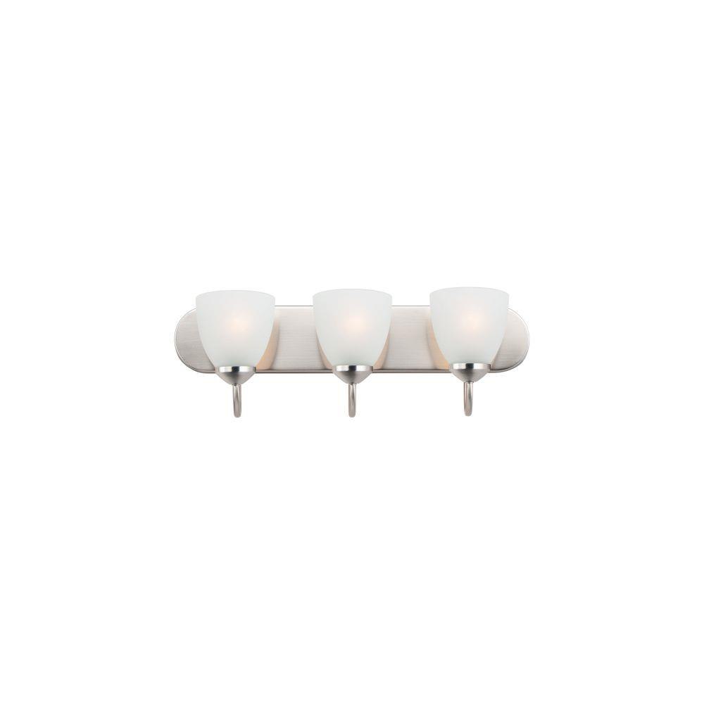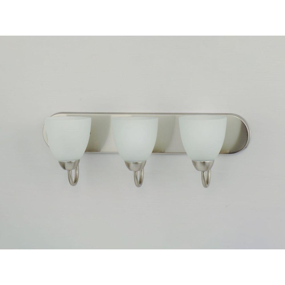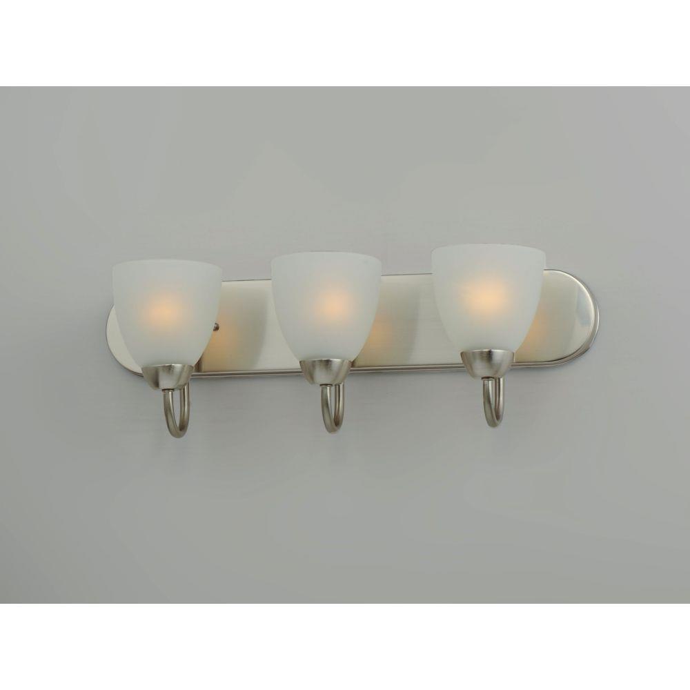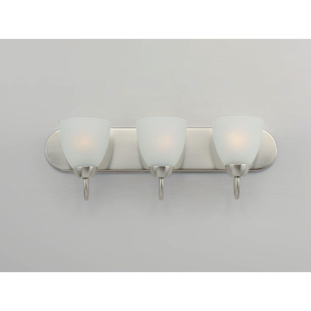 This transitional design works in any style home. Intersecting, rectangular tubing finished in your choice of Satin Nickel or Oil Rubbed Bronze gently curves to support simple line Frost glass shades.