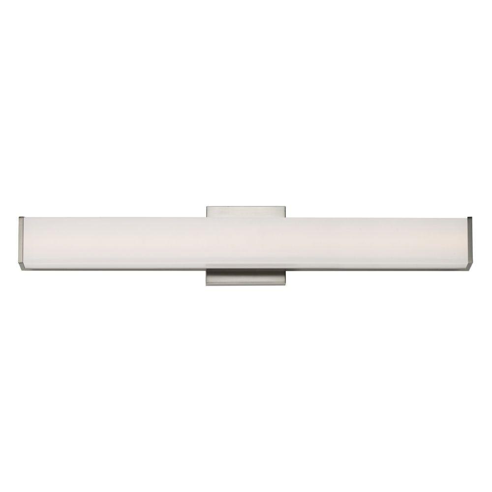 Squares of Satin White glass are supported by flat Polished Chrome end caps with an extruded aluminum frame. Housed on the backside of the LED vanity light is a device to select from 5 color temperatures: 2700k-3000k-3500k-4000k-5000k. A dual mounting backplate allows for the fixture to seamlessly install to a switch box making the glass appear as if floating on the wall. An additional mounting bracket and cover plate is included in the packaging to accommodate larger junction boxes. Enhancing these features with a range voltage 120-277V input, makes this heavy hitting note land squarely into specification requests as well as the home improvement do-it-yourselfer.