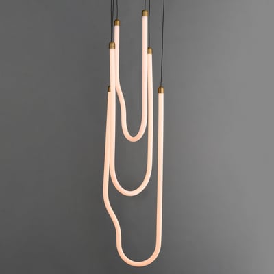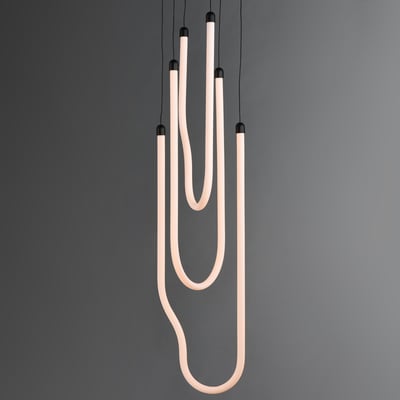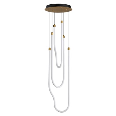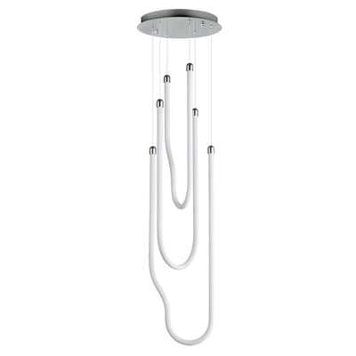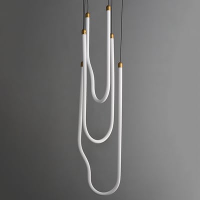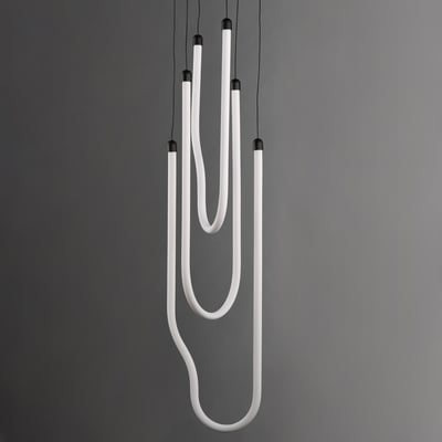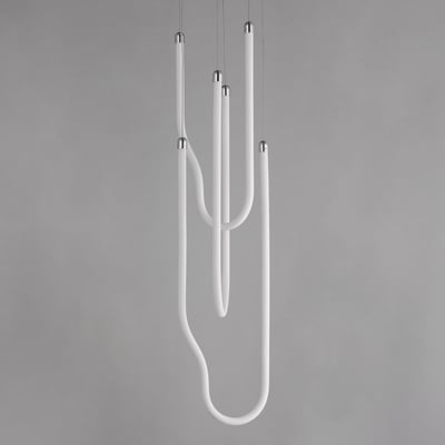 The Soleil Multi-Light LED Pendant redefines modern lighting with its sweeping matte white acrylic tubes that encase an omnidirectional LED light source. Inspired by solar flares, this striking design blends minimalism with dramatic flair, making it an eye-catching addition to any space.