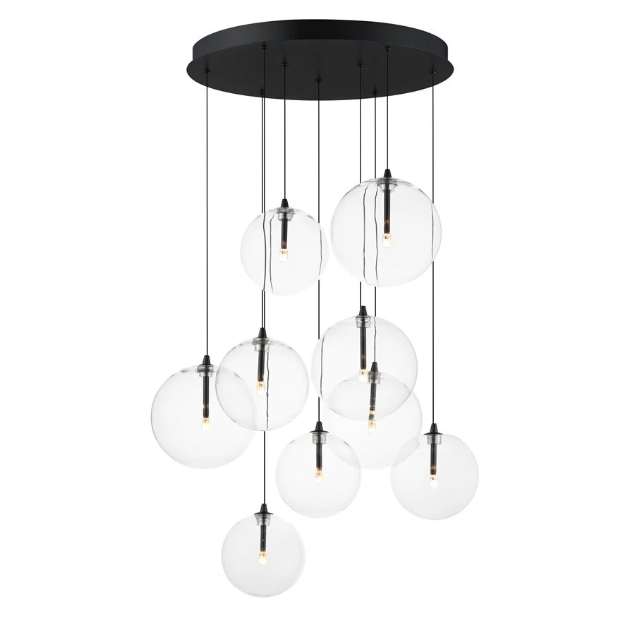 ET2 Lighting Global 9-Light LED Chandelier, Black/Clear - E25077-18BK