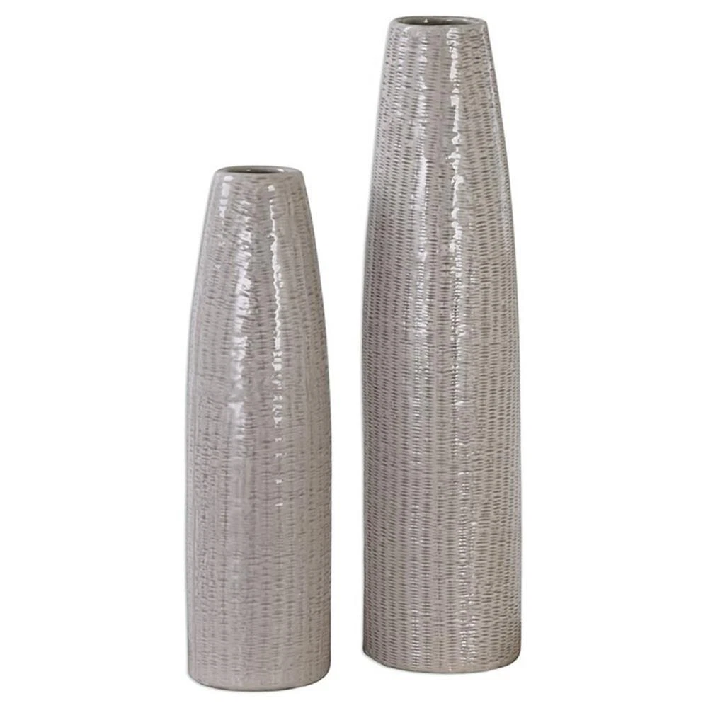 Uttermost Sara 2-Piece Coastal Ceramic Vase Set in White and Brown