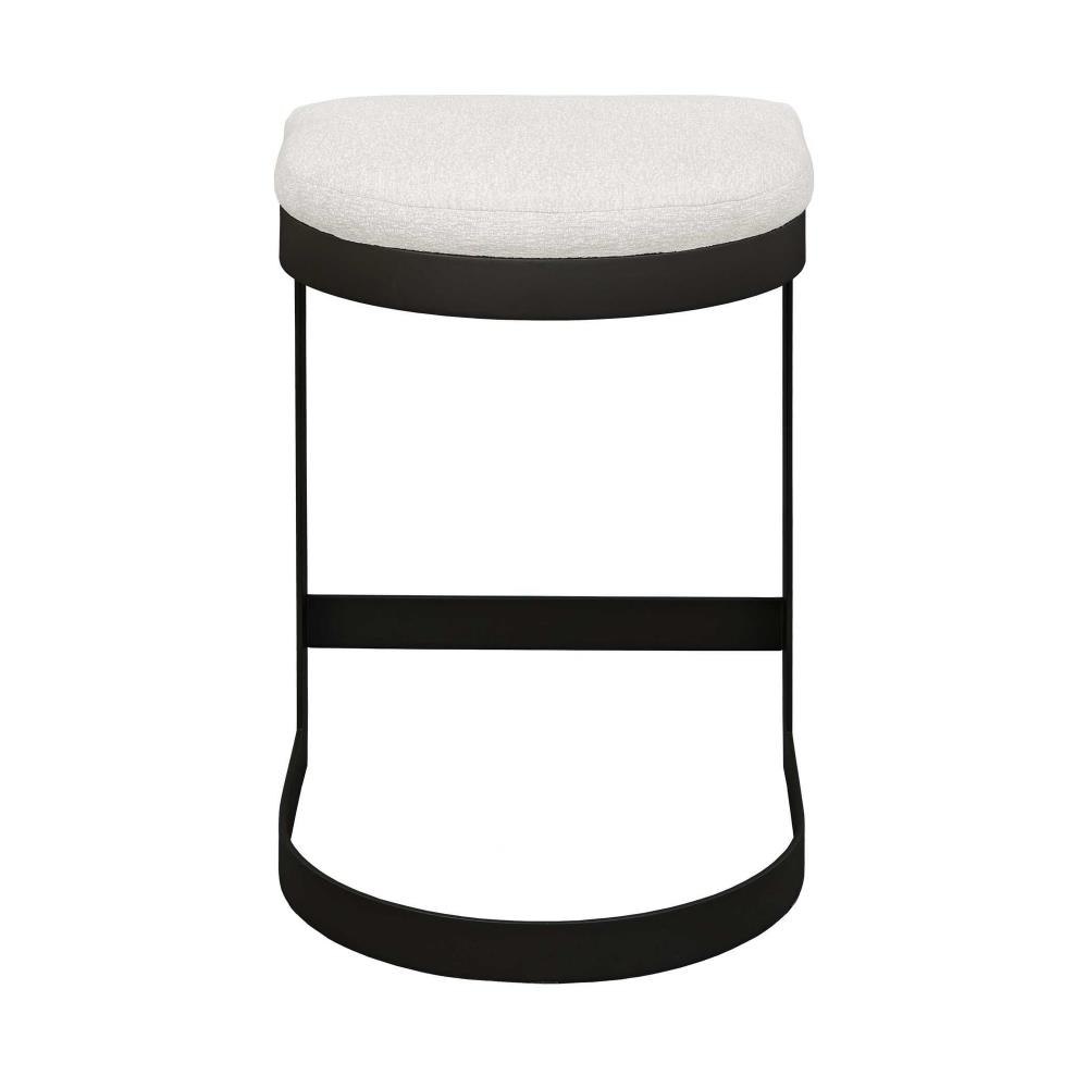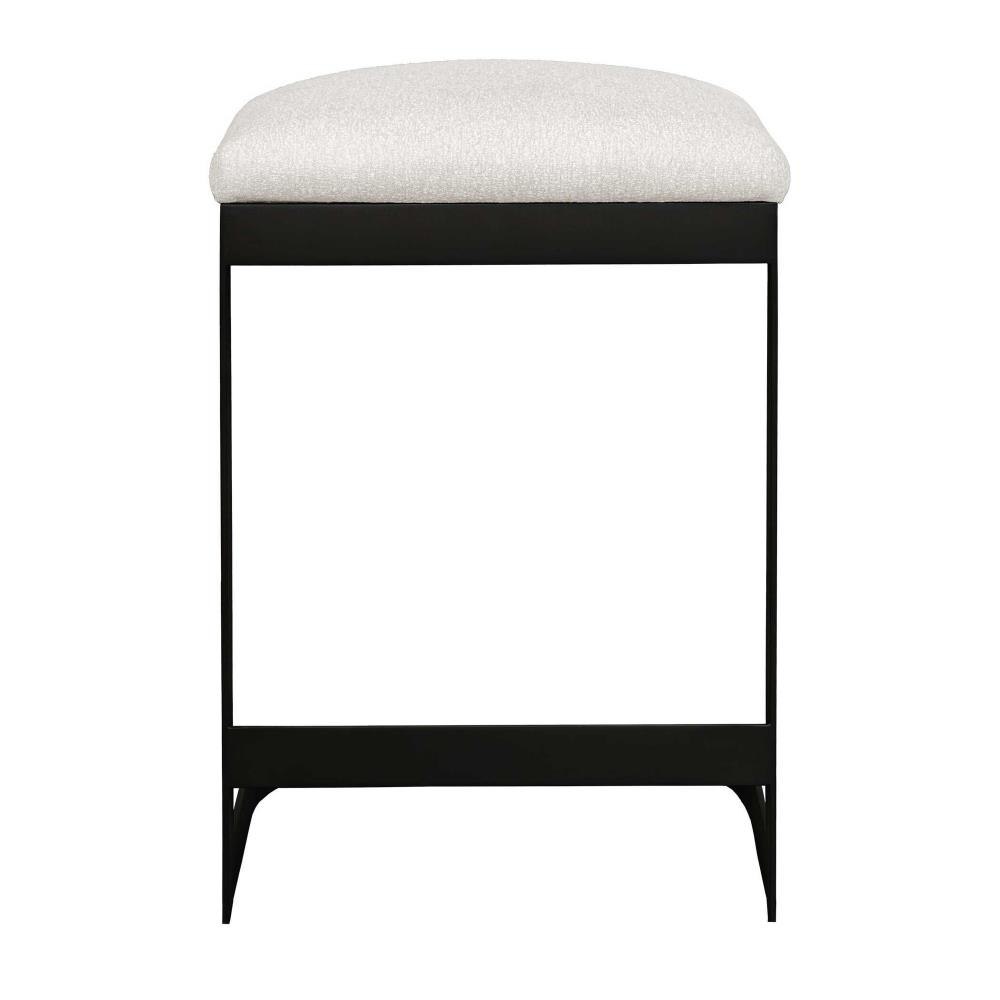 The Maude Outdoor Counter Stool Blends Industrial Style With Cozy Comfort, Featuring A Durable, Powder Coated Steel Frame In Java Black Paired With A Plush Cushion In Heavily Textured Taupe Gray Solution Dyed Acrylic Fabric.
