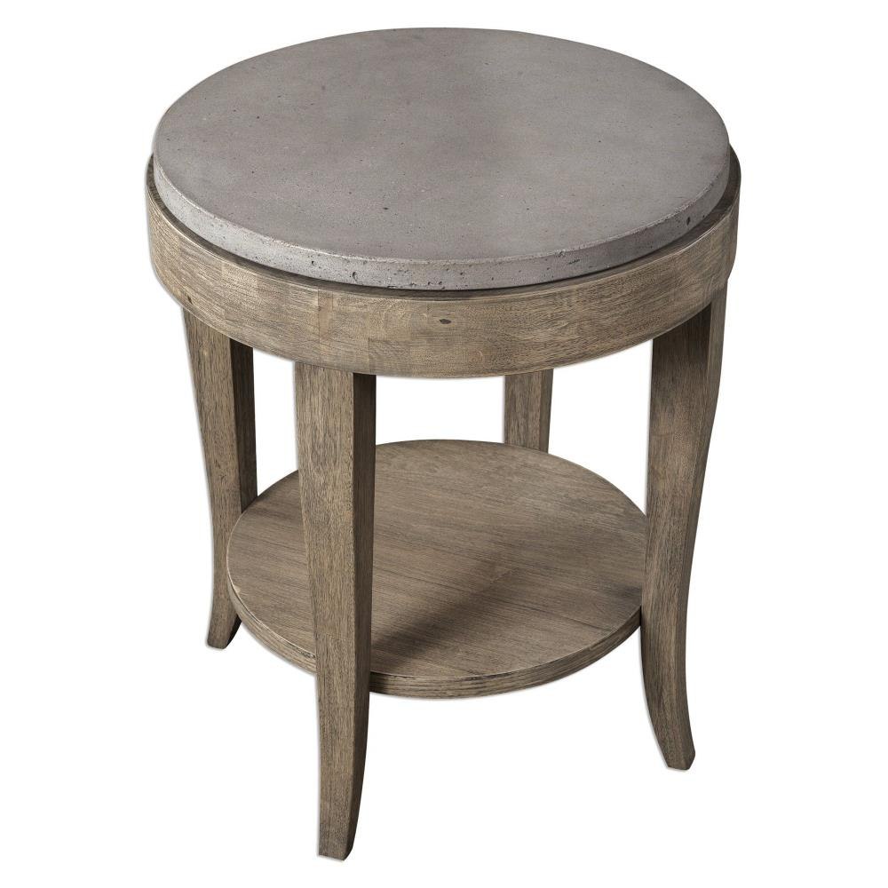 A Casual Farmhouse Inspired Accent With Birch Wood Veneer, Finished In A Natural Brown Glaze With A Solid Poured Concrete Surface Top.