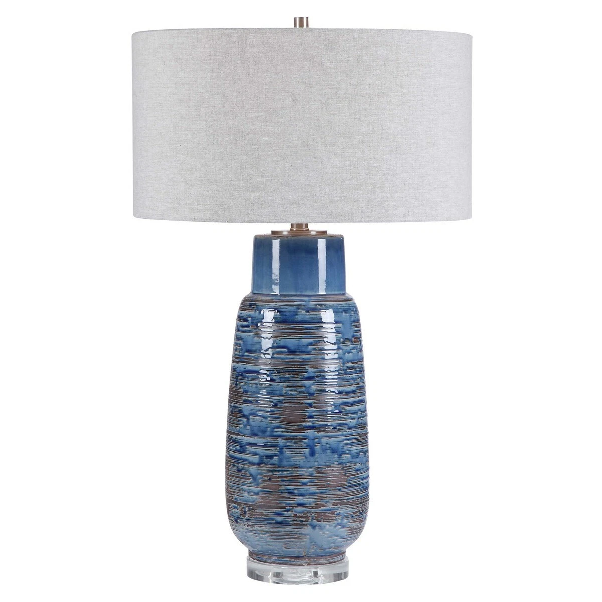 Magellan Ceramic Table Lamp Crystal Foot Indigo Blue Drip Glaze Uttermost 28276