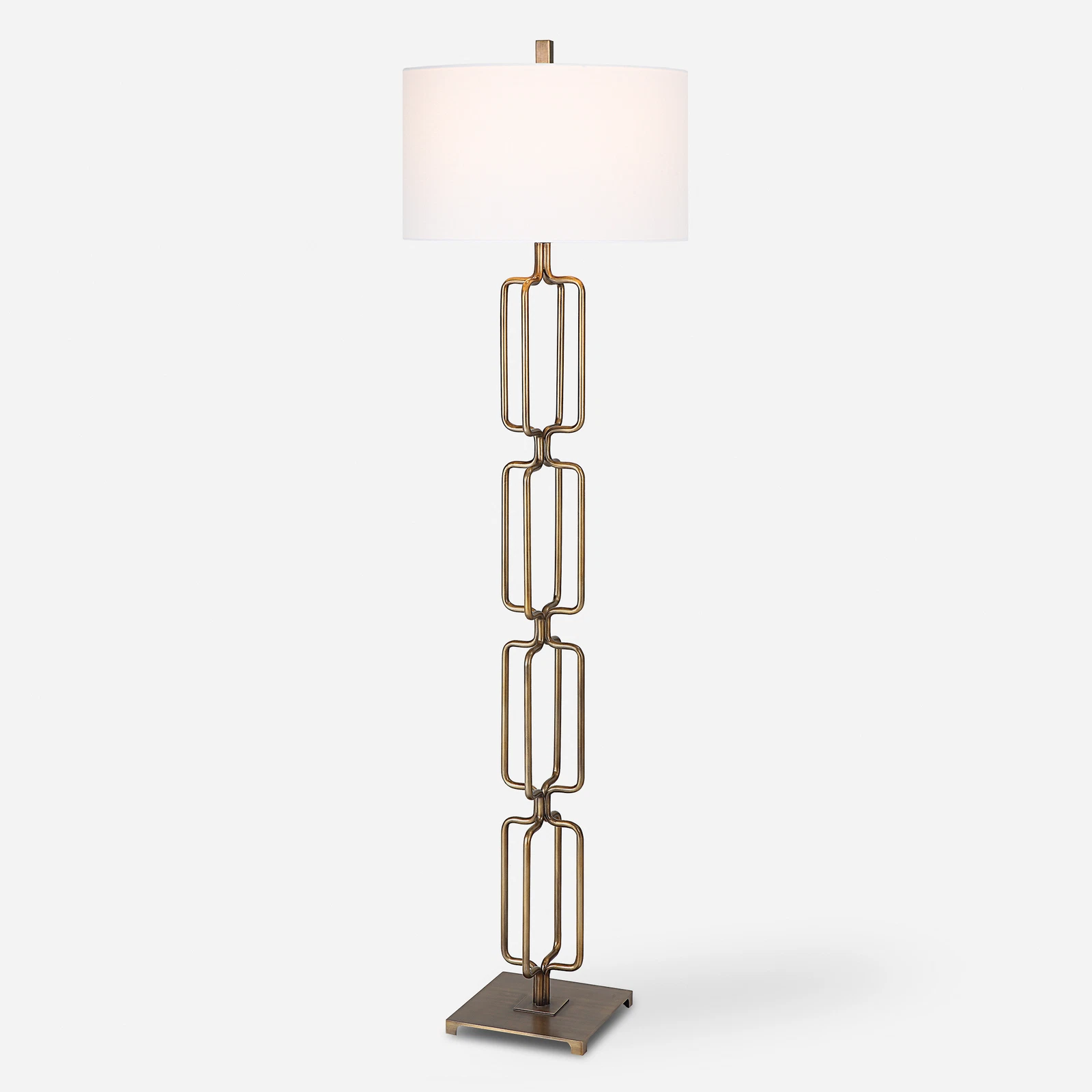 Contemporary Stacked Gold Bronze Links Floor Lamp 67 in Open Chain Rings Shapes
