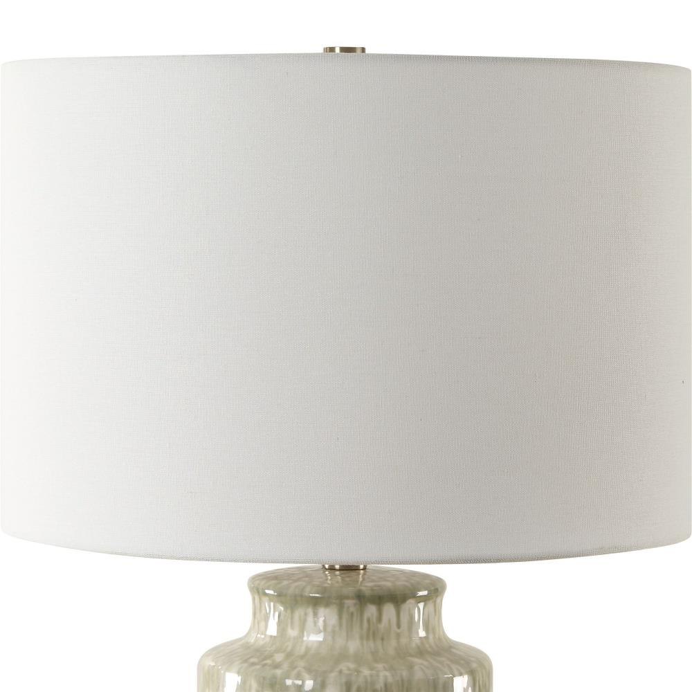 Illuminate Your Space With The Laurel Table Lamp, Featuring A Ceramic Base With Organic Pattern In Soothing Cream And Sage Glaze. This Elegant Lamp Brings A Touch Of Serene Sophistication To Any Room. A Round Hardback Shade In Off-white Linen Completes The Piece.