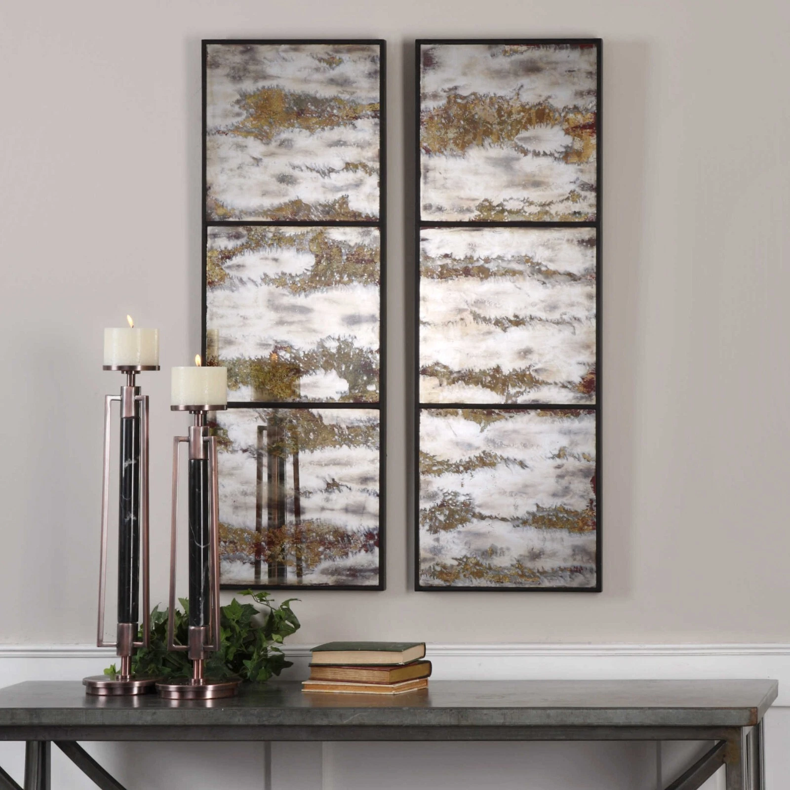 UTTERMOST 4099 RAHILA HEAVILY OXIDIZED ANTIQUED EARTH TONE MIRROR SET OF 2
