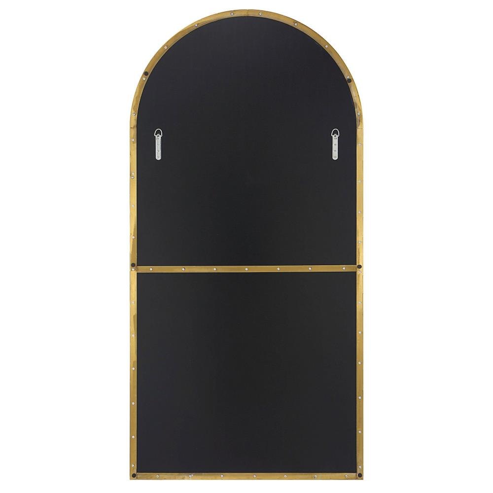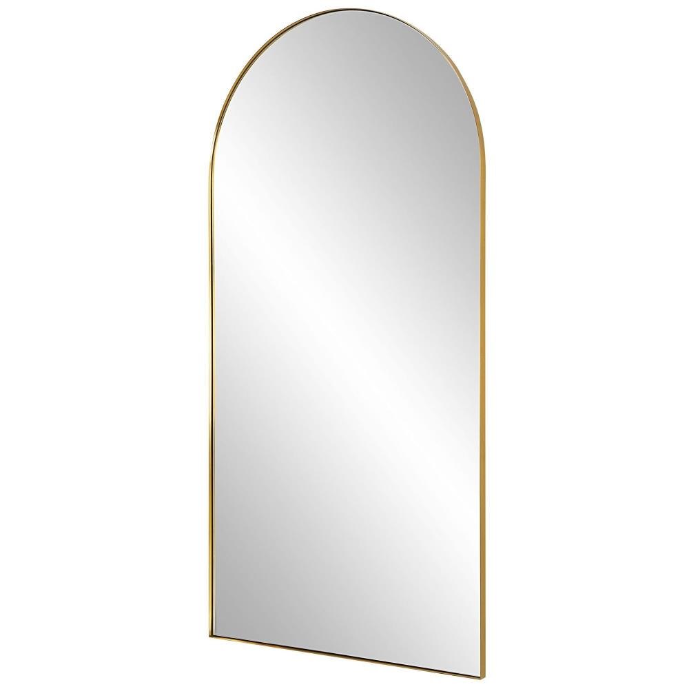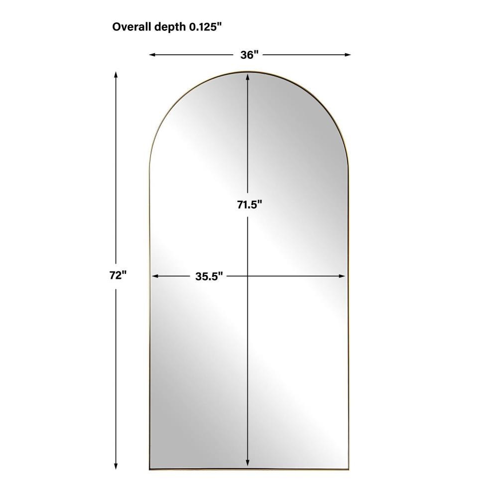 This Oversized Arch Features A Sleek Stainless Steel Frame Finished In A Rich Antique Brass Surrounding A Floating, Polished Edged Mirror.