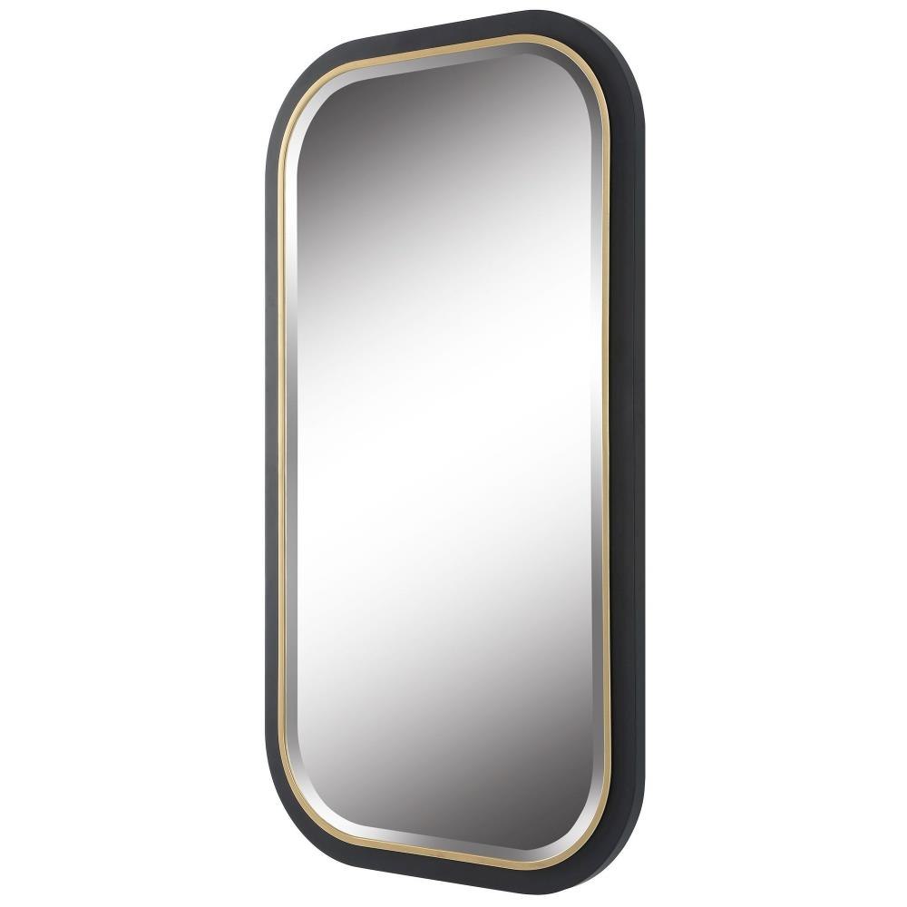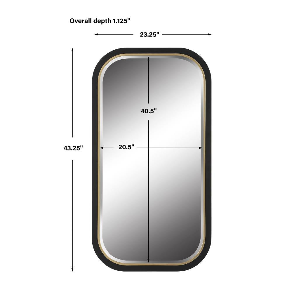 The Nevaeh Mirror Displays An Elegant Curved Profile With A Satin Black Finish, Accented With A Petite Gold Leaf Inner Edge. Mirror Features A Generous 1 1/4" Bevel. May Be Hung Horizontal Or Vertical.