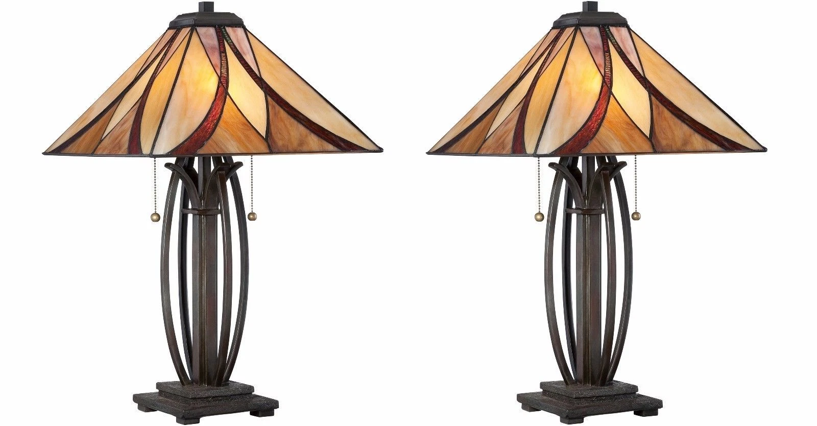 Quoizel TF1180TVA - Asheville 2 Light Tiffany Table Lamp, Bronze Finish - 2 Pack