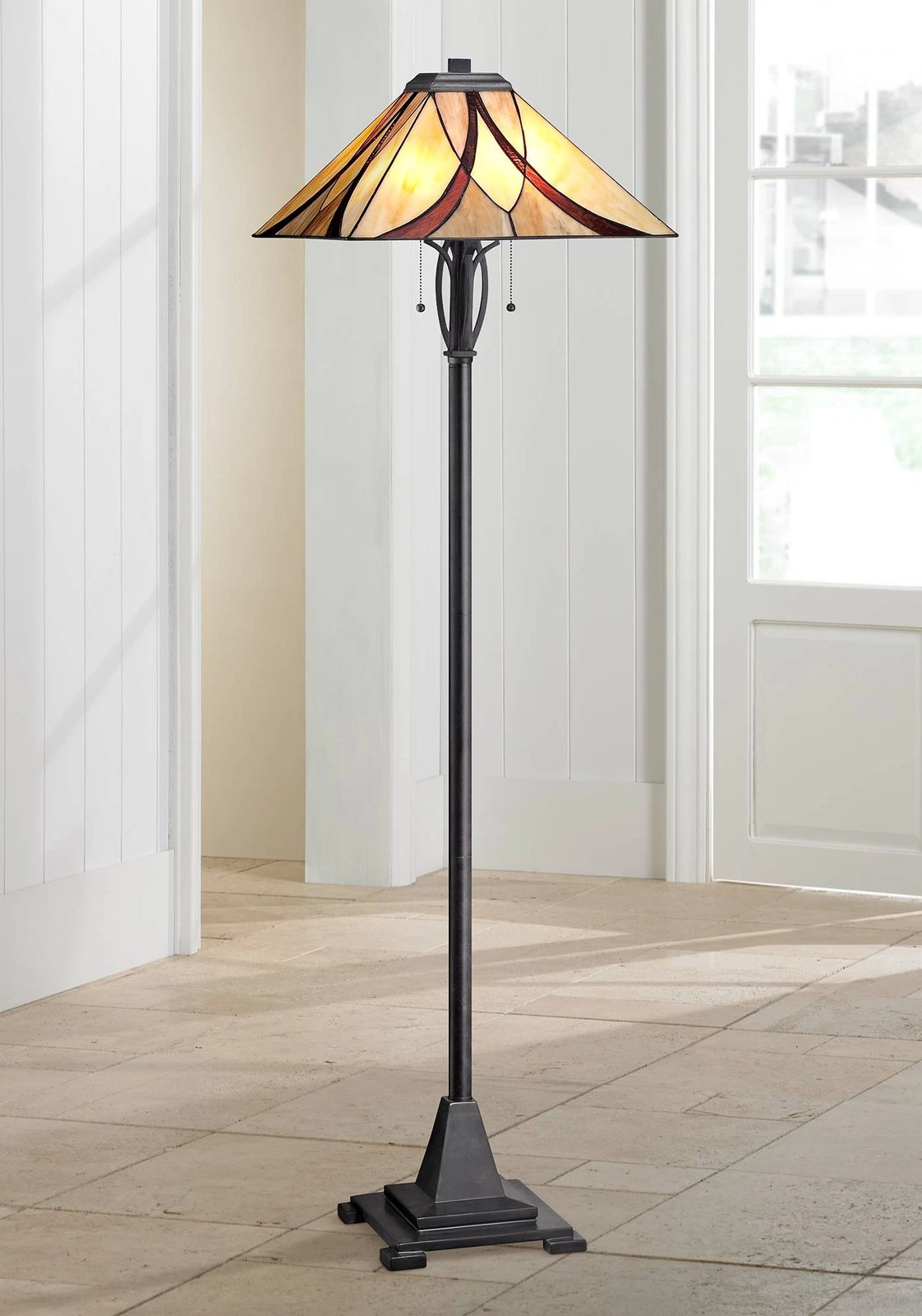 Quoizel Asheville 60" Valiant Bronze Tiffany-Style Glass Floor Lamp