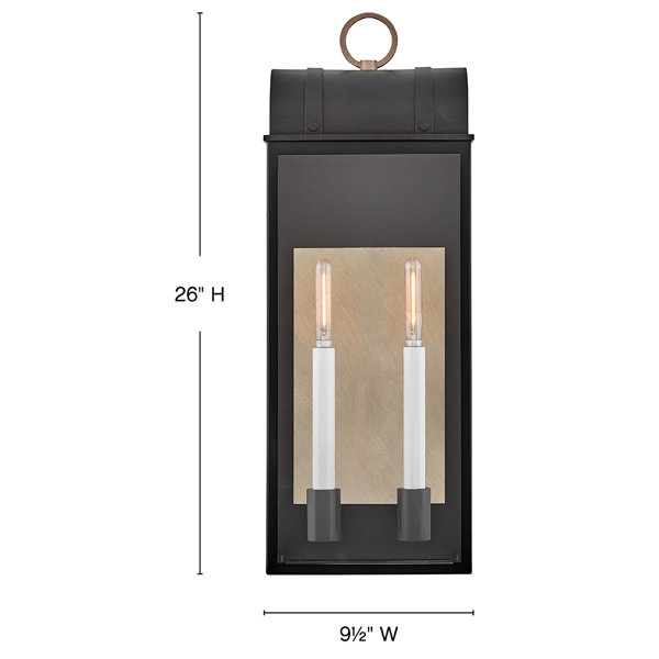 Overall Specs: 9.50" W x 26.00" H | Back Plate: 9.25" W x 19.75" H | Top to Outlet: 13.25" | Extension: 5.75" | Weight: 11.00 lbs. | Light Source: (2) 5w Candle LED bulb (not included)