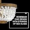 Product Summary: Fredrick Ramond Dune Medium Semi-Flush Mount Light - Boho Chic, Low Ceilings, Hand-Strung Soft White Sea Glass Fringe, Coastal Luxe - Burnished Gold Finish