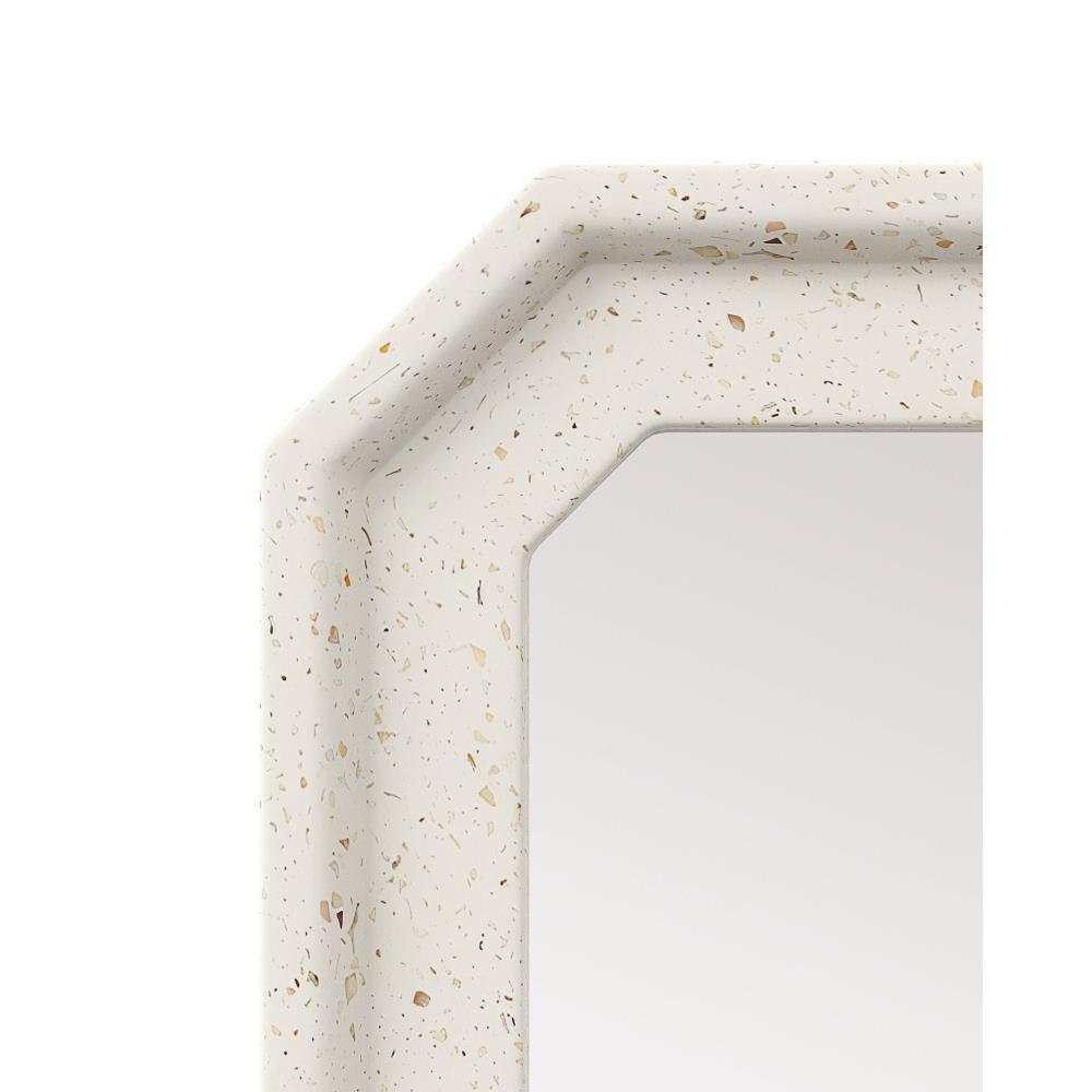 The Carson Ivory Mirror blends durability and modern sophistication. Crafted from sturdy concrete, it features a sleek ivory terrazzo finish that is infused with tempered glass fibers that creates soft amber and metallic flecks. It is suitable for both indoor and covered outdoor spaces, making it an ideal choice for patios, entryways, or living areas.