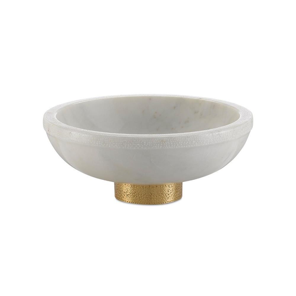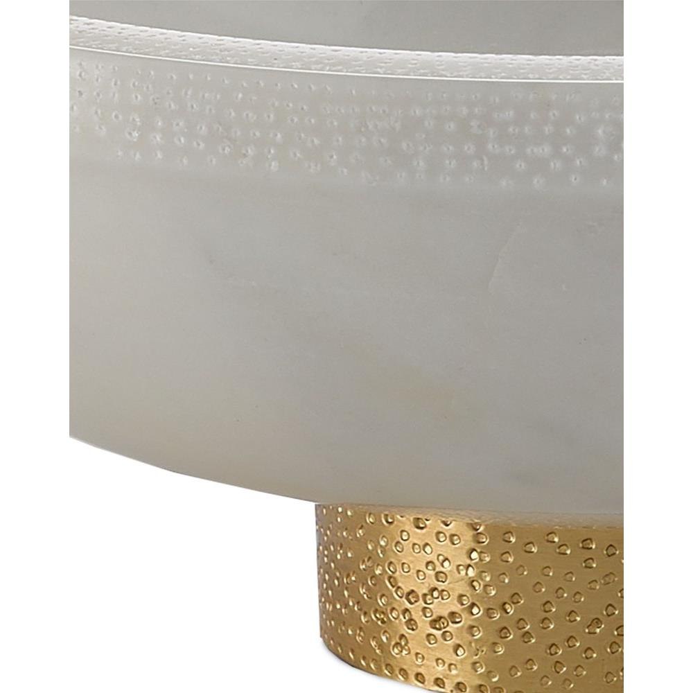 The Valor Large White Bowl is made of white marble and brass in a brass finish, the golden tones of the base bringing this simple design more heft. Pair this decorative white bowl with the Valor White Small Bowl for double the charm.Foam Bottom.