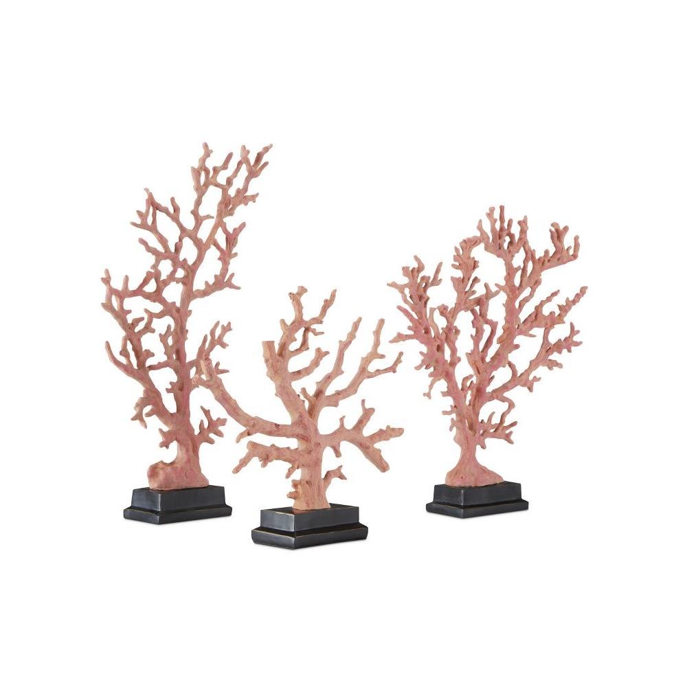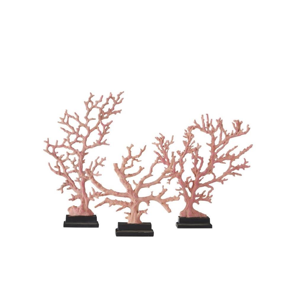 Made of composite, the Large Red Coral Branches Set fools the eye into thinking they are composed of the natural materials found at the bottom of the sea. Though they appear to be placed on stacked wood stands, these bases are made of composite as well. The red sculptures have two artisans to thank for the feeling of authenticity: the mold maker, who is central to the work; and the painter, who hand-paints the pieces to create the illusion that they are from nature.