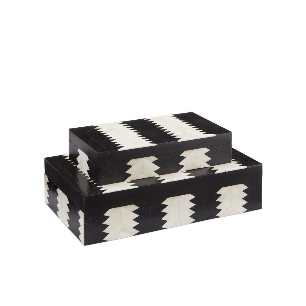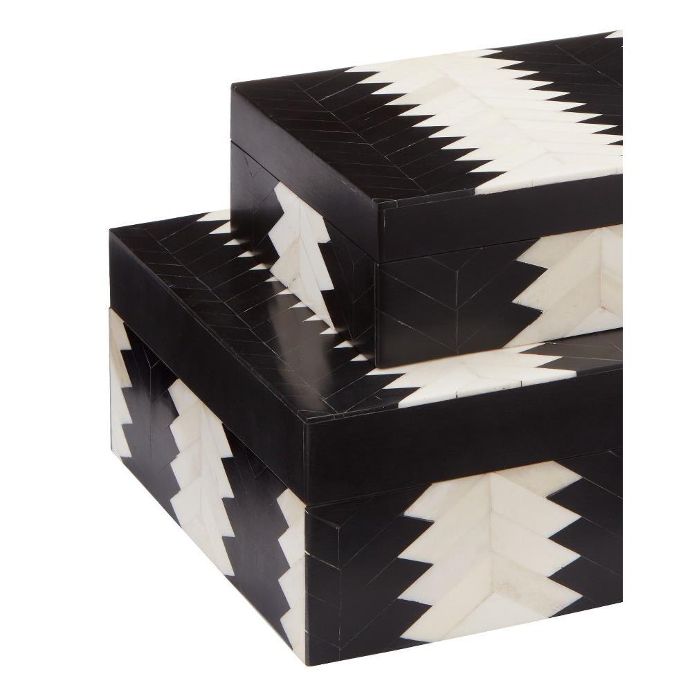 The Arrow Black & White Box Set, designed by Jamie Beckwith, is based on a strong graphic shape that comes alive with the contrast of bone and composite in ivory and black along the surface. Originally created in bold patterns for vertical and horizontal surfaces, Beckwith says of the Arrow, "This is a unique take on a chevron pattern. I was inspired by original French chevron parquets and this pattern is an updated version of that. There is a classic feel to this graphic shape with a modern take. It provides a strong underlying structure that bonds all the elements of a room together."