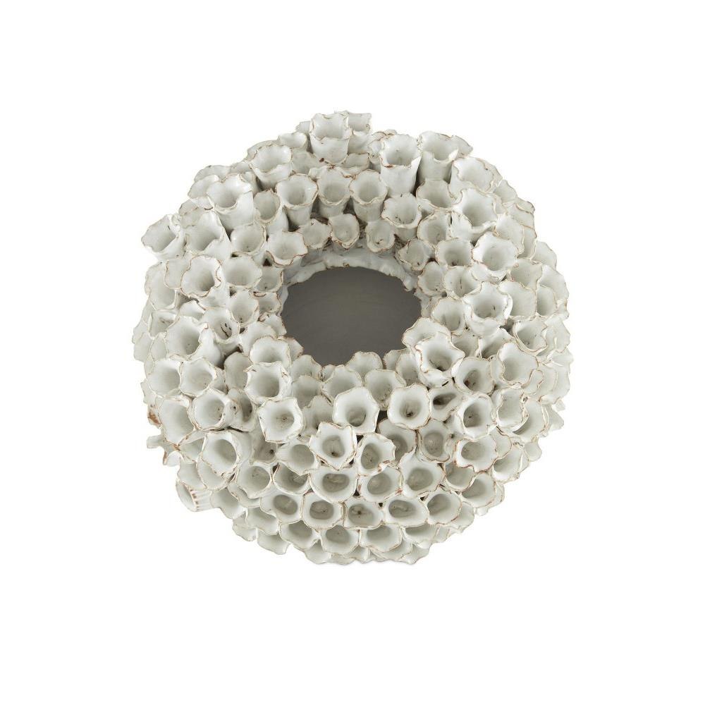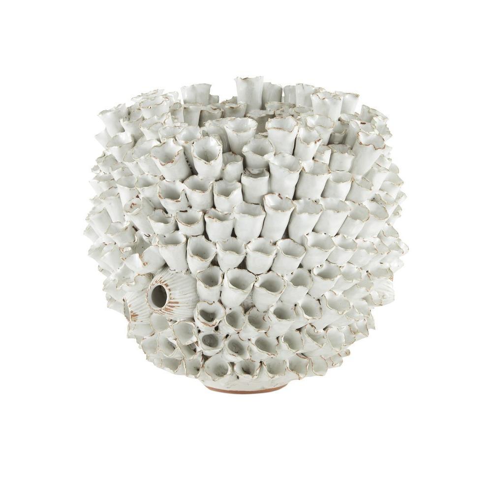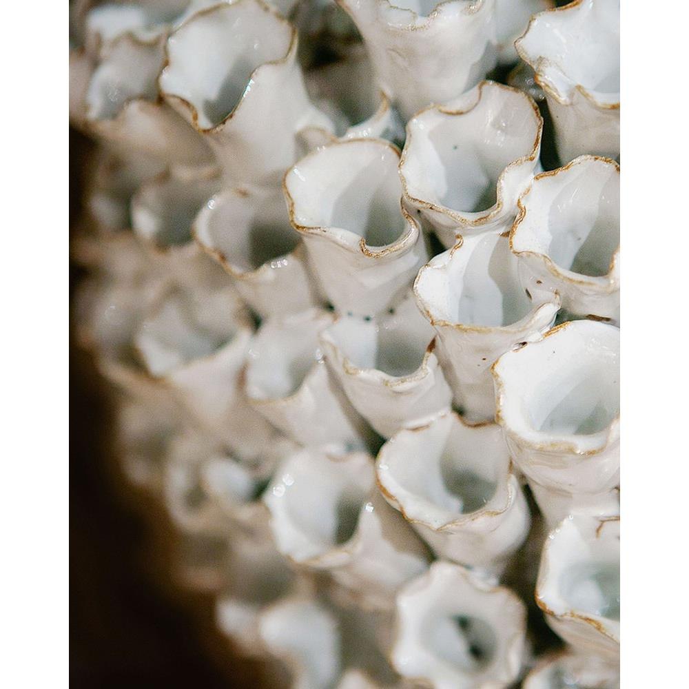 The Manitapi White Vase is made by a group of elderly women who live at the border of Burma and Thailand. Made from black terracotta, this incredible hand-thrown white vase is completely covered in handmade bell-shaped flowers. Once the blossoms are in place, the vase is glazed with a crisp white. We also offer the Manitapi in two sizes in a dark blue.