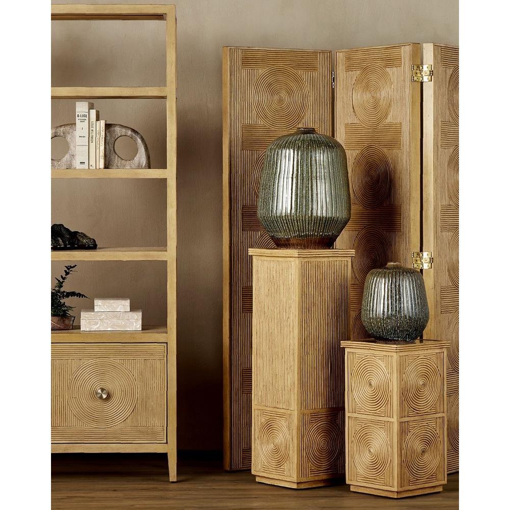 The Shoulder Medium Vase is made of ceramic that is hand-thrown by Thai ceramicists, then intricately decorated with green and brown reactive glazes. This brings the surface of the large vessel some serious texture. The liveliness of the surface will also add a Bohemian vibe to the space it will ornament. Because the glazes are applied by hand, this piece will vary slightly from vase to vase.