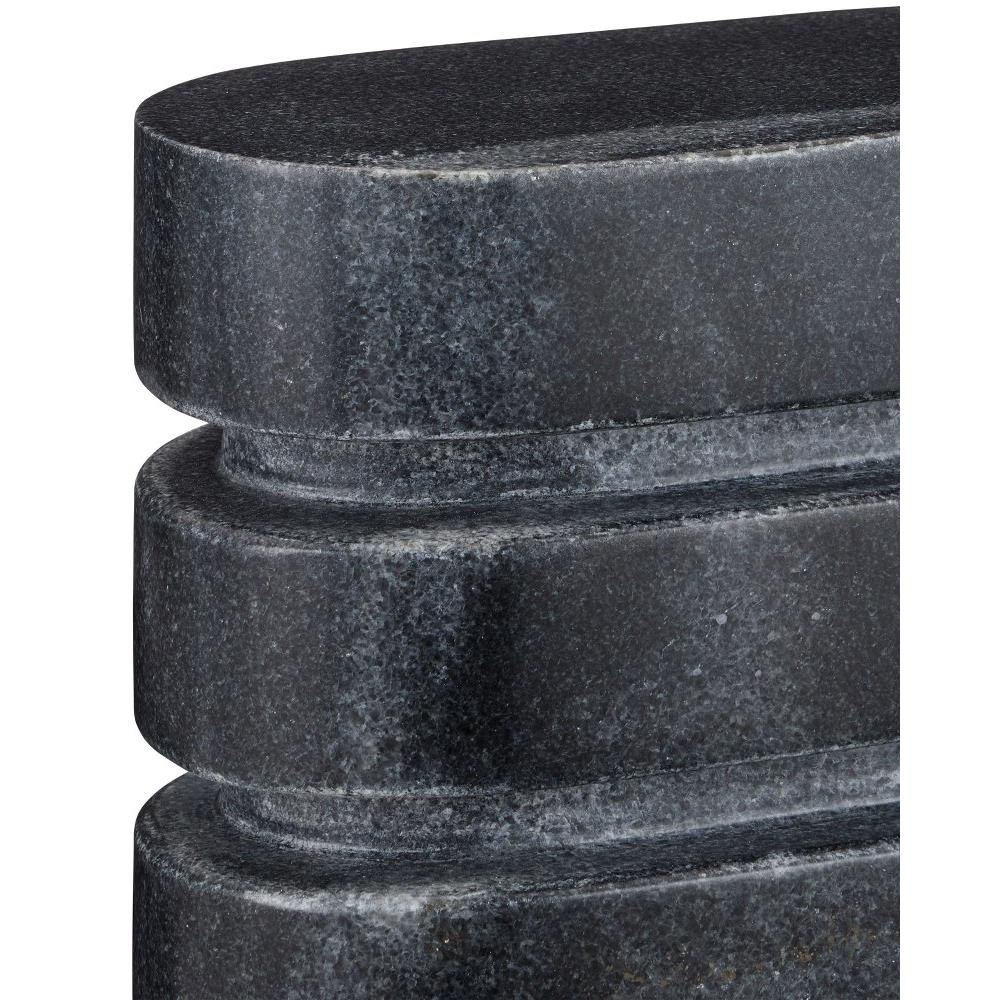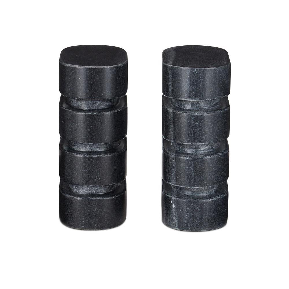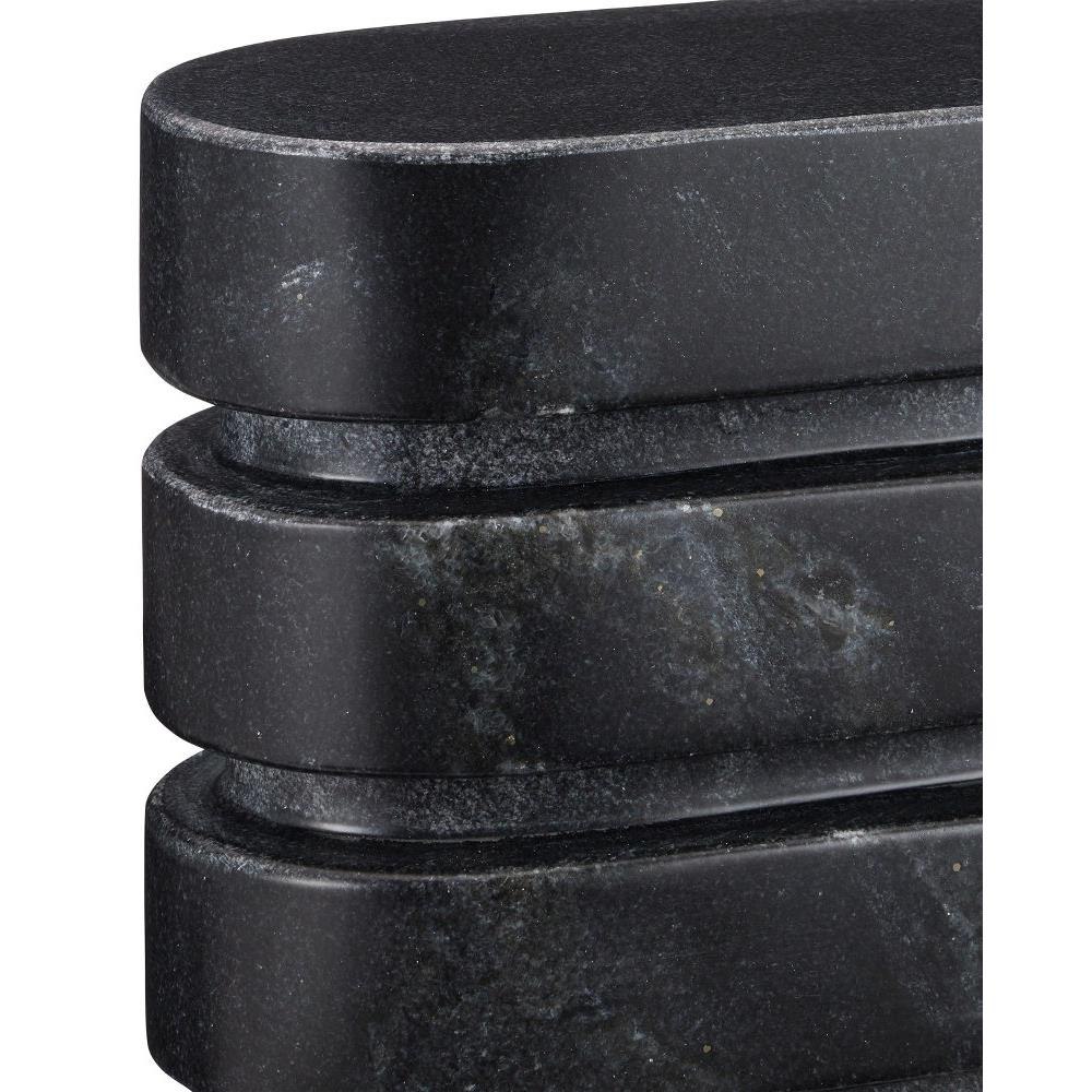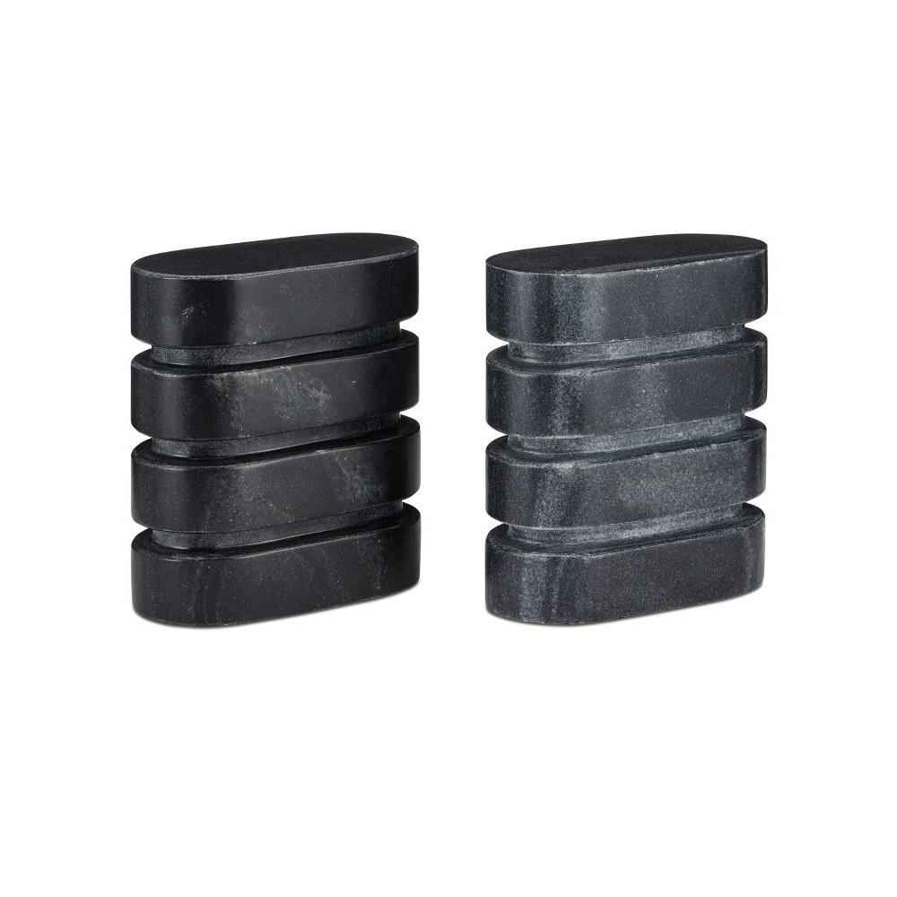 The Bheslana Marble Black Object Set includes two sculptures made of their namesake stone to bring the pieces subtle hints of patina. The veining that creates personality on the outer surfaces makes each of the decorative accessories unique. Rather brutalist in style, these are perfect decorative objects for contemporary interiors.