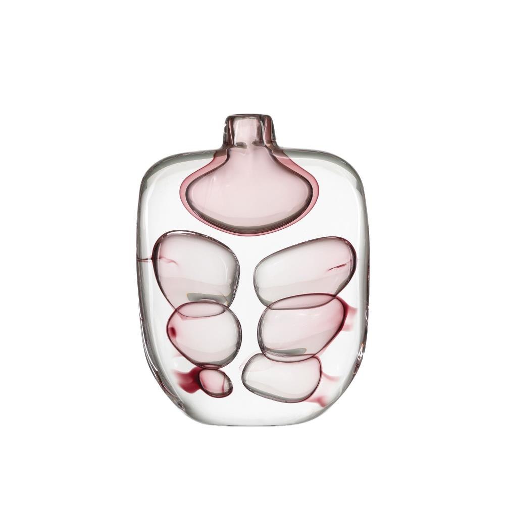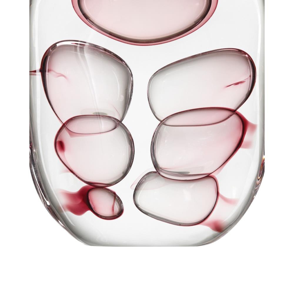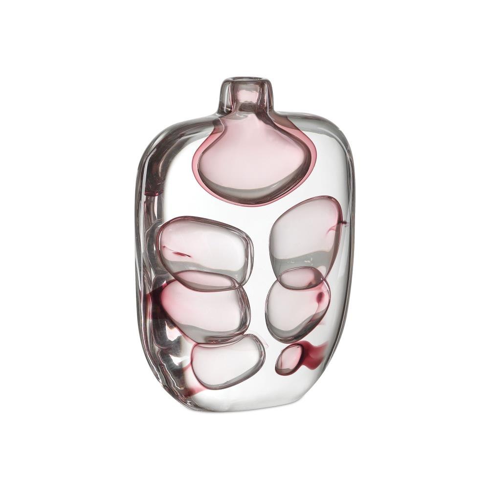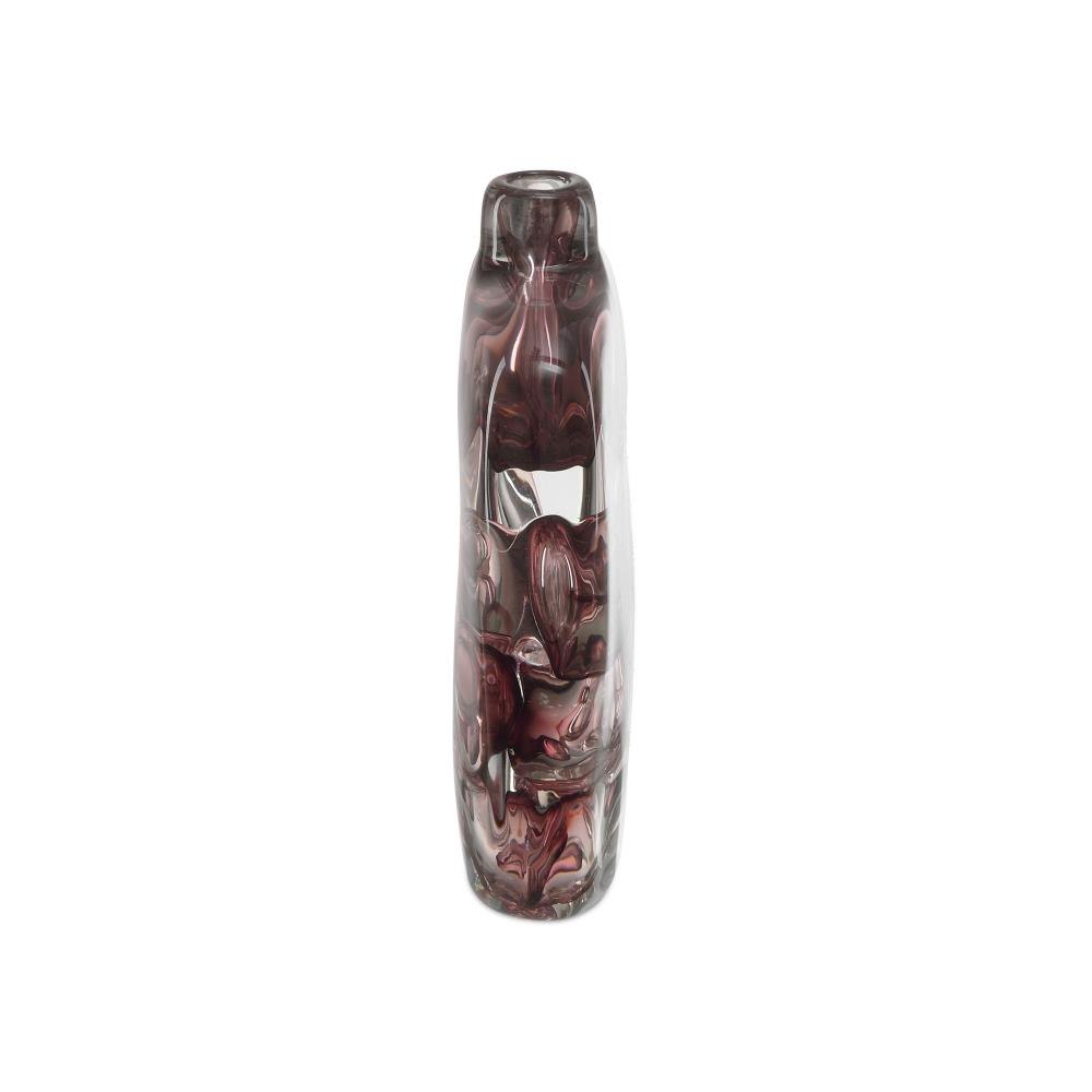 Make a bold statement with the Danielli Medium Vase that is expertly crafted from hand-made clear and purple glass. Suspended within its elegant form, organically placed bubbles create a sense of movement and depth, turning light and color into a captivating display. Both sculptural and functional, this vase will make for a striking accent piece in the most sophisticated setting.
