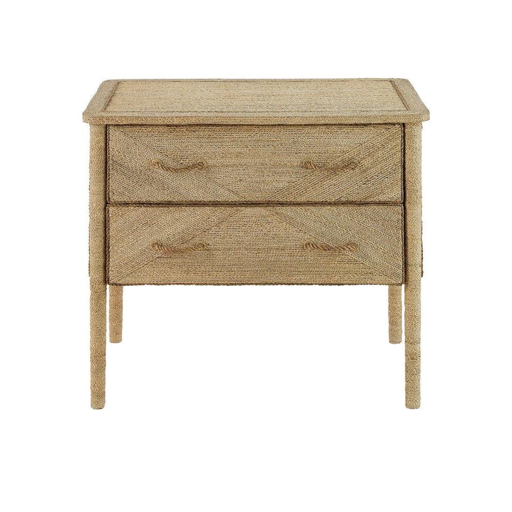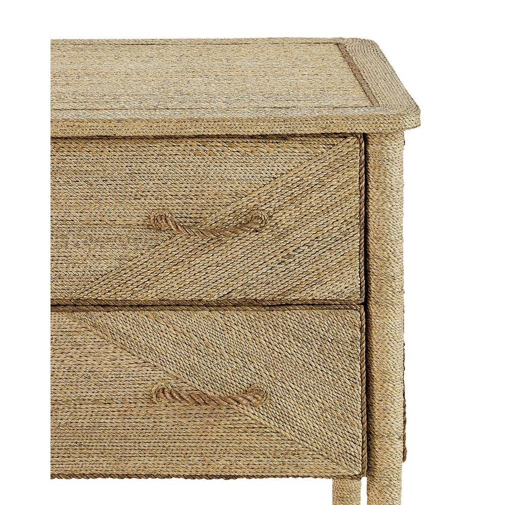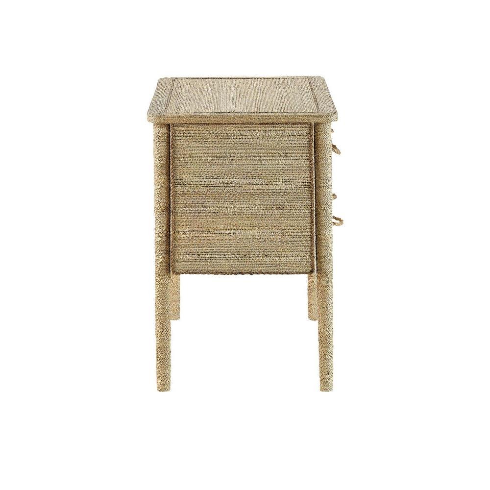 The Kaipo Two-Drawer Chest is wrapped artistry with its exterior and drawer-fronts covered painstakingly in Abac+í rope. The heftier rope drawer-pulls give this piece a nautical feel. The rope chest is one of our artisanal pieces that requires great skill to create, as the sisal is painstakingly hand-applied to each piece. We also offer the Kaipo as a nightstand.Hand-Wrapped Rope, 2 Drawers with Ball Bearing Slides, Adjustable Glides, Anti-Tip Kit.