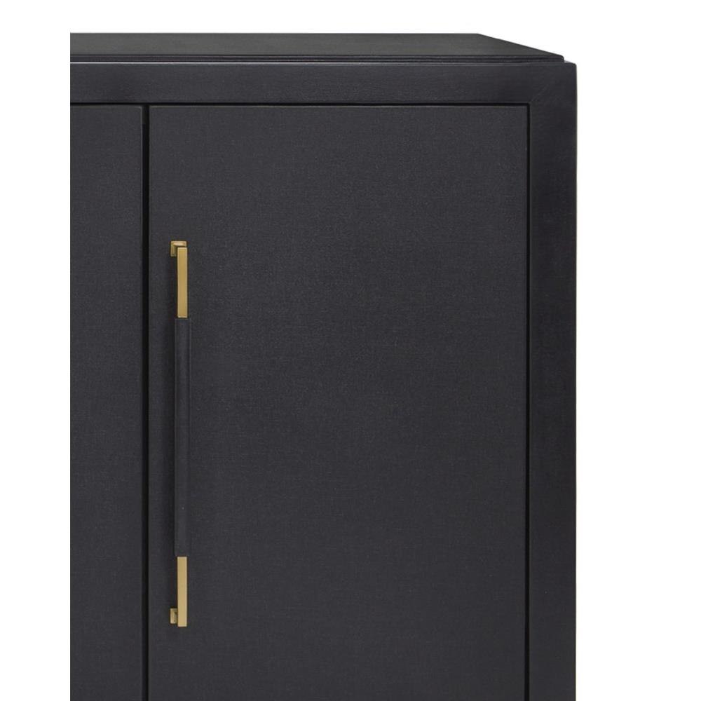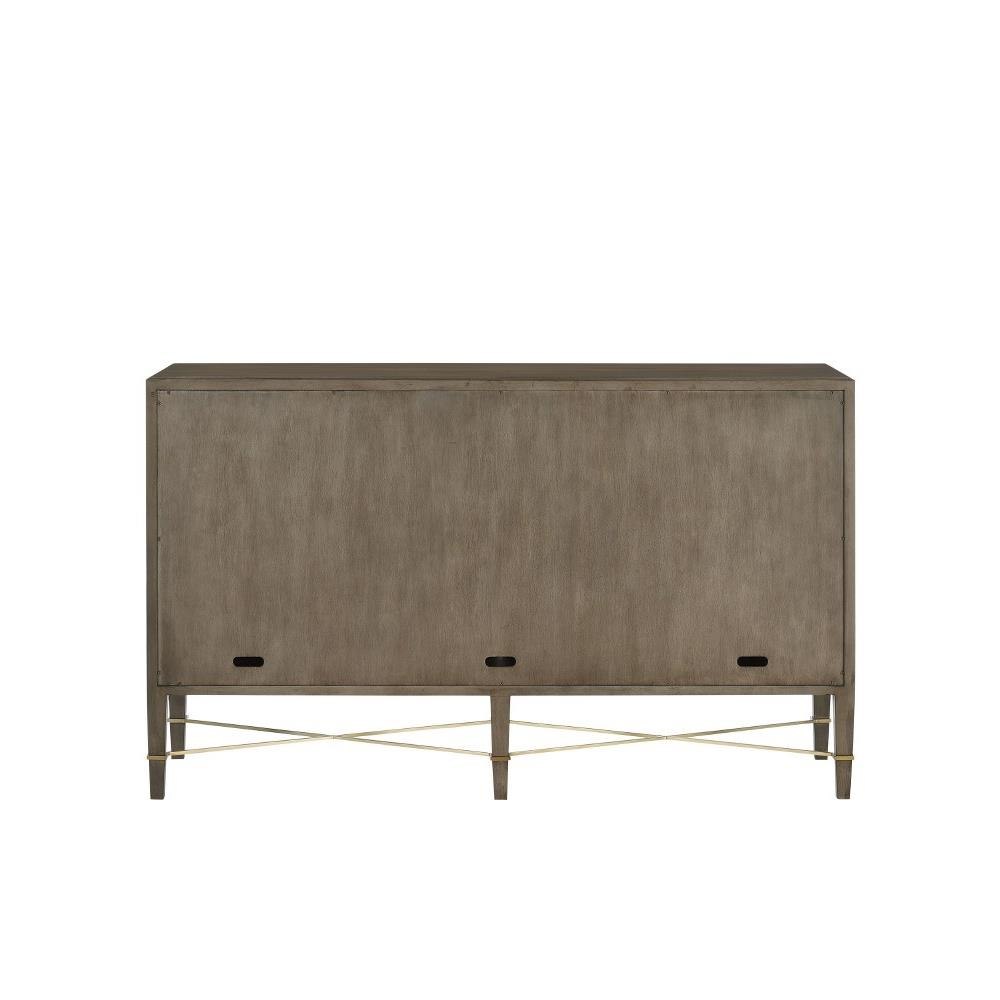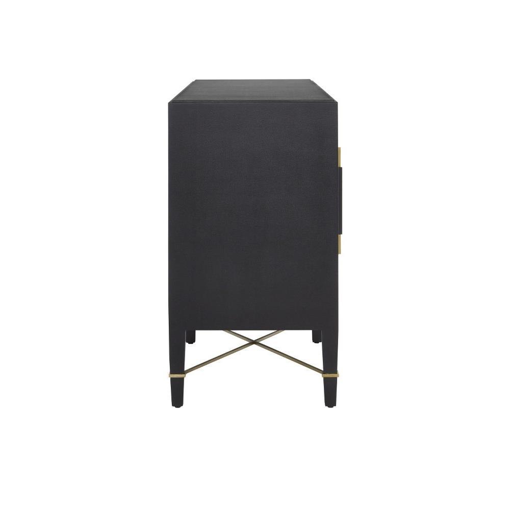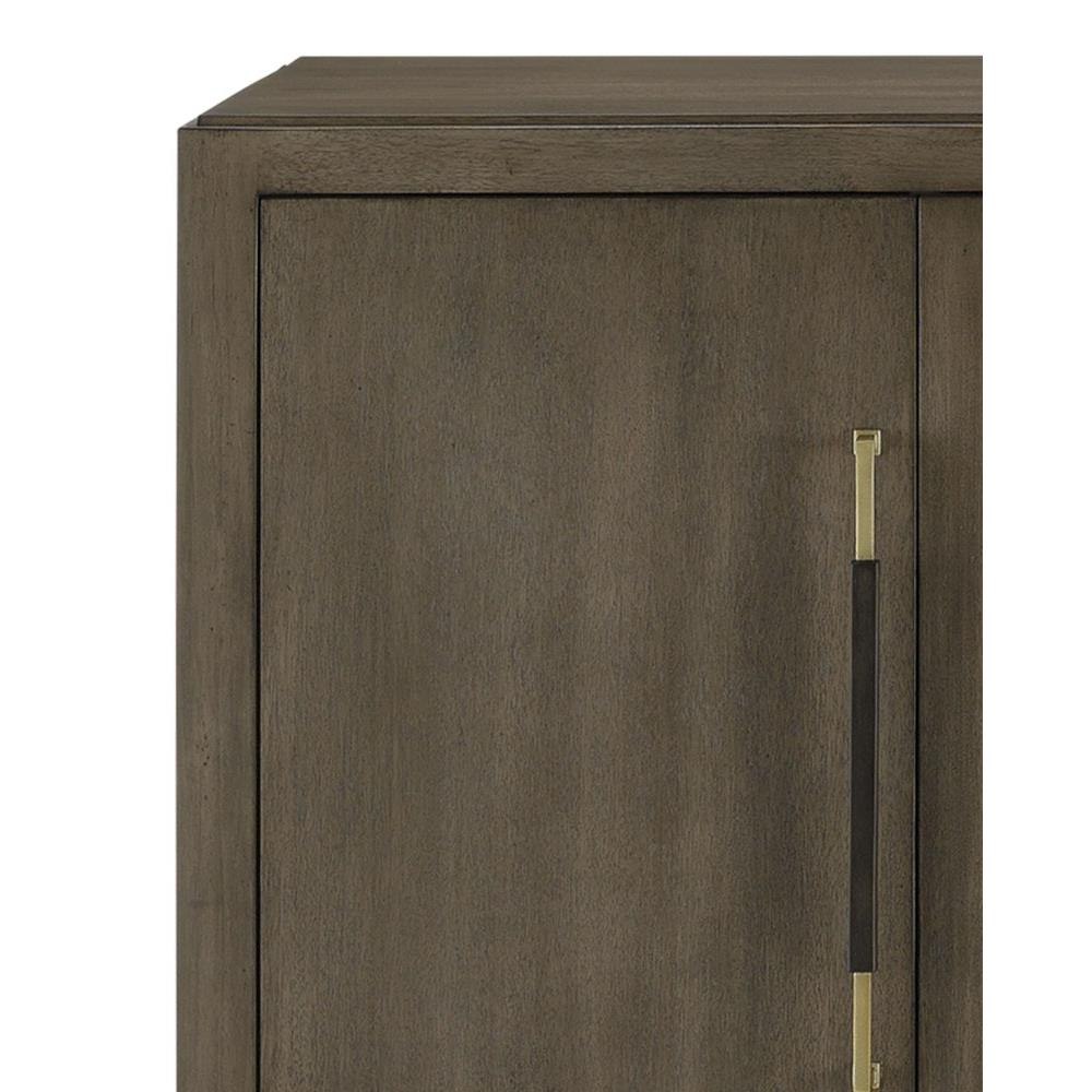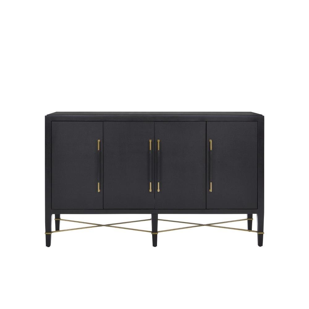 Made of mahogany in a woodland-inspired chanterelle finish, the Verona Chanterelle Sideboard is warmly handsome with its metal detailing in a champagne finish. The stretchers on this brown sideboard bring it its flair. There are a number of pieces in the Verona family of furnishings in both black and brown finishes.Custom Wood Cladded Brass Door Handles, Soft Close Door Hinges, 2 Fixed Shelves, 4 Adjustable Shelves, Cord Management, Adjustable Glides, Anti-Tip Kit.