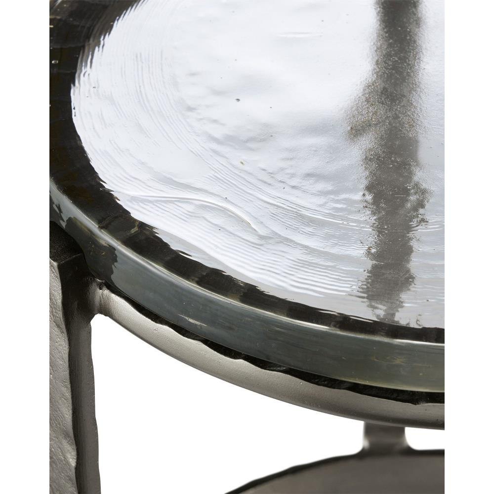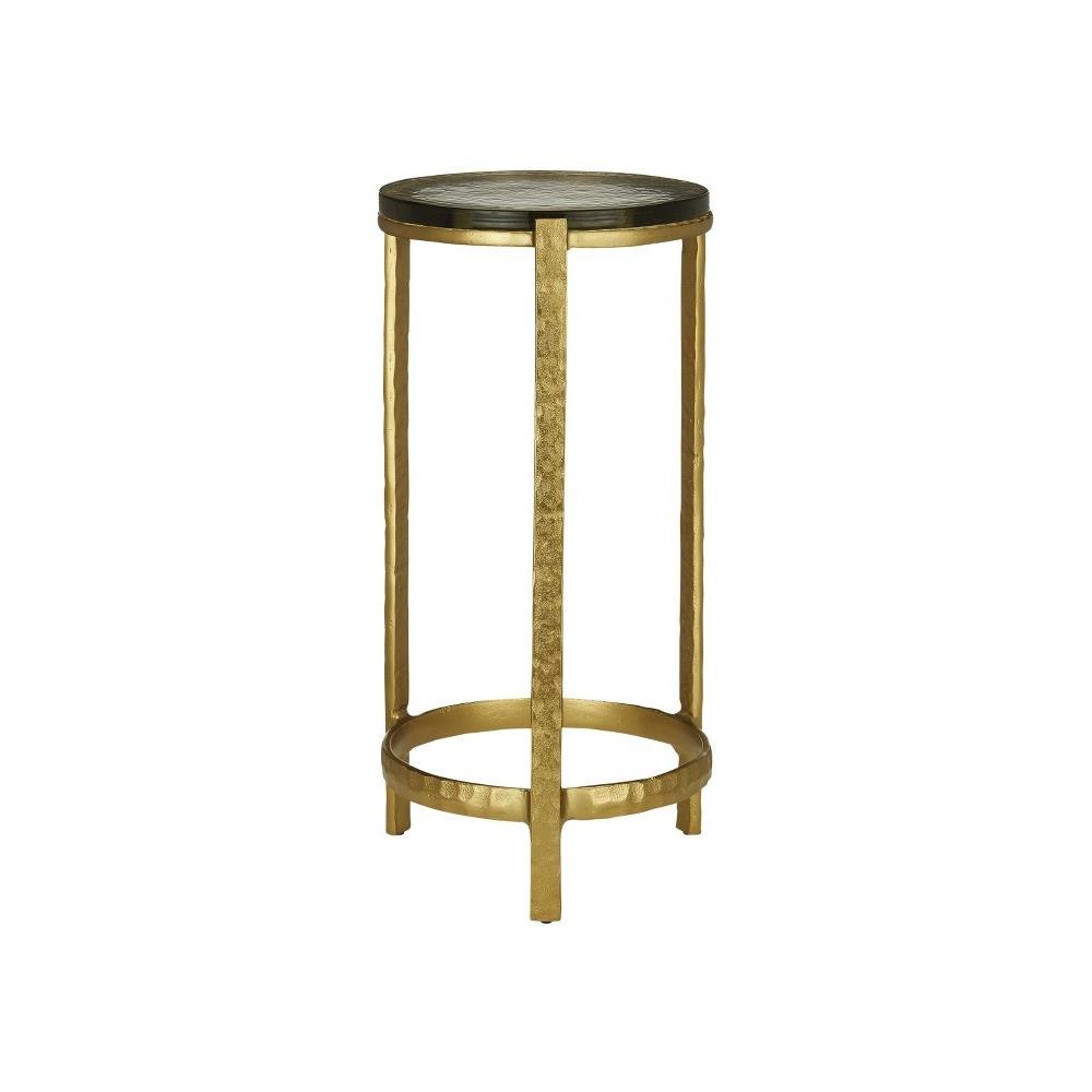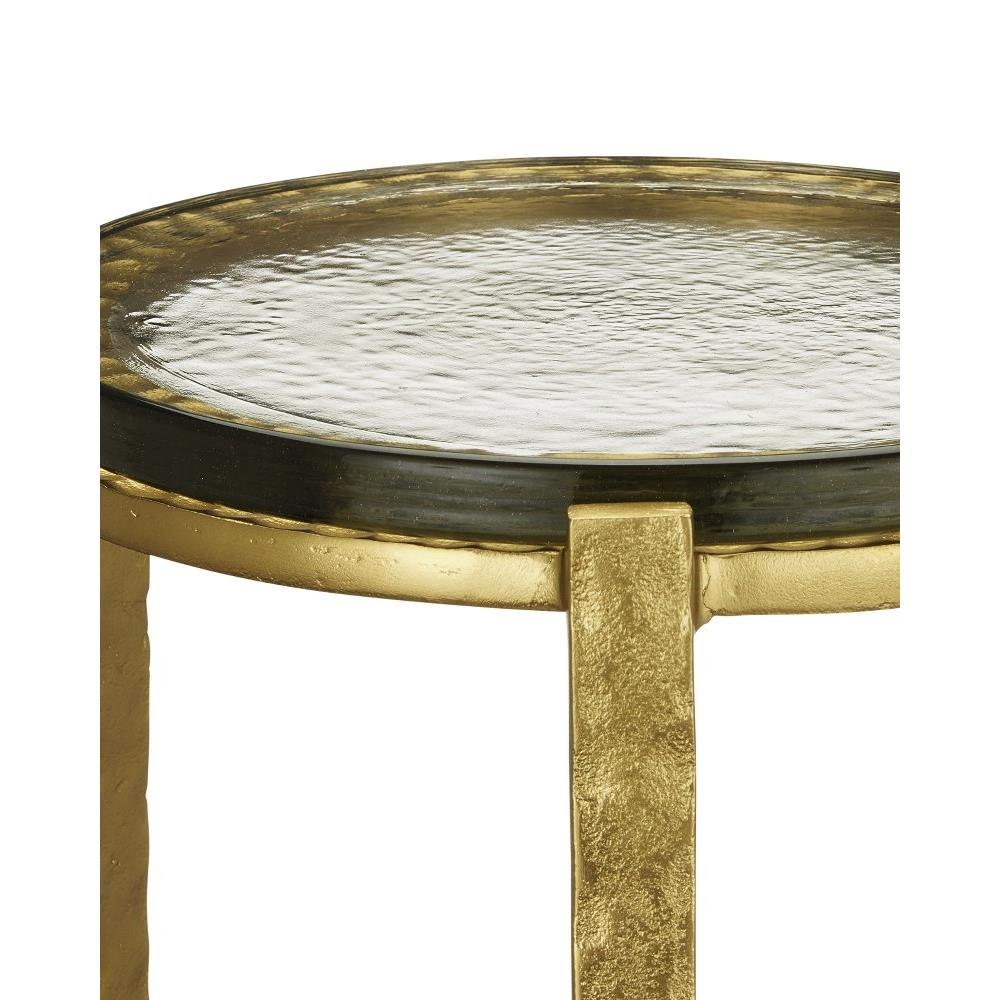 The point at which art and fine craftsmanship meet is where the Acea Gold Drinks Table resides. Made of cast aluminum poured into a hammered mold to create even greater texture, the gold drinks table is topped with a cast glass disc that is equally textural and luminous. This table will be a piece of jewelry in a space.
