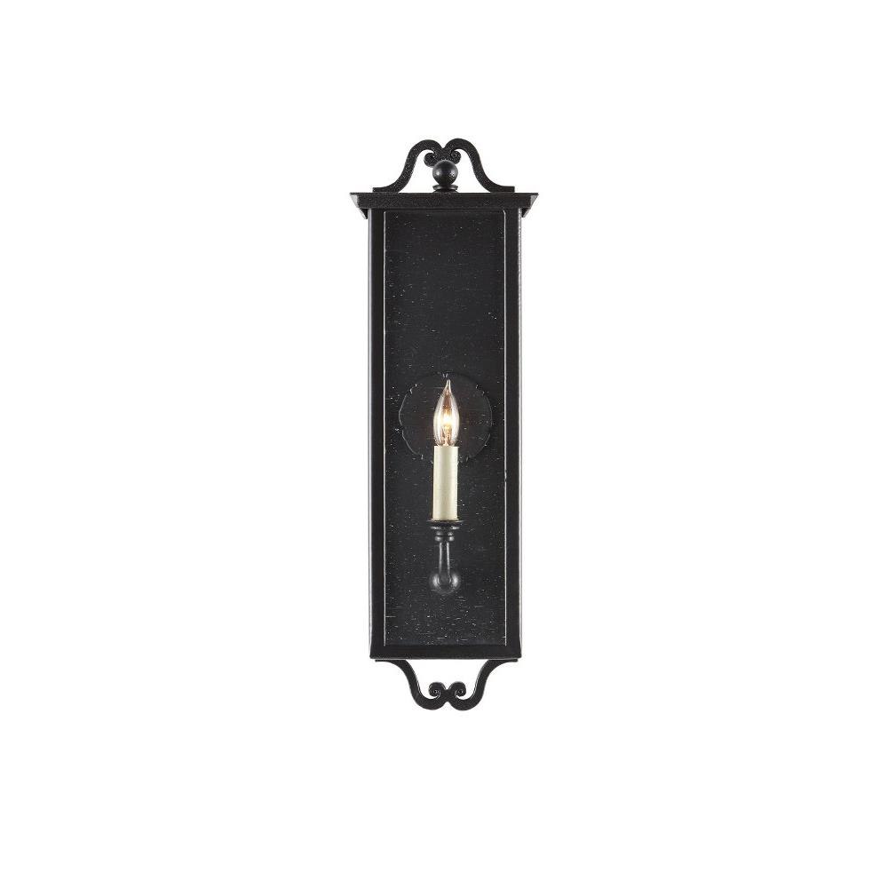 The Giatti Small Outdoor Wall Sconce in our Twelfth Street collection of outdoor lighting features a high-performance, weather-resistant Trilux finish that is fade resistant, crack resistant and rust resistant. We guarantee the finishes applied to our Twelfth Street pieces for five years. The metal on this black sconce in a midnight finish surrounds seeded-glass panes. We also offer this design in large and medium wall sconces, and as hanging lanterns.Suitable for Indoor/Outdoor Use.