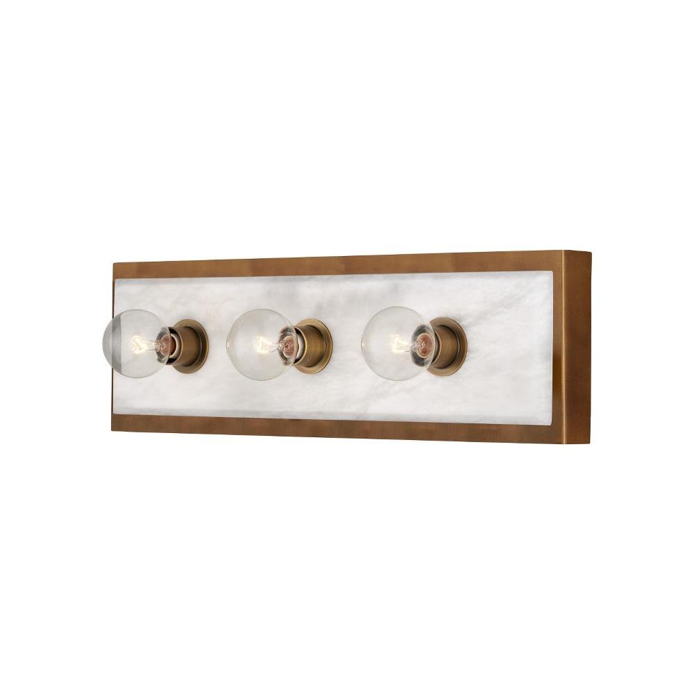 The Berdine Medium Brass Bath Bar is a simple design that allows the natural alabaster to shine. Made of metal in an antique brass finish, the warmth of the gold contrasts the coolness of the stone to bring a subtle complexity to this design. It can be mounted vertically or horizontally, and the alabaster panel has a nice bevel to it where it meets the metal rim.