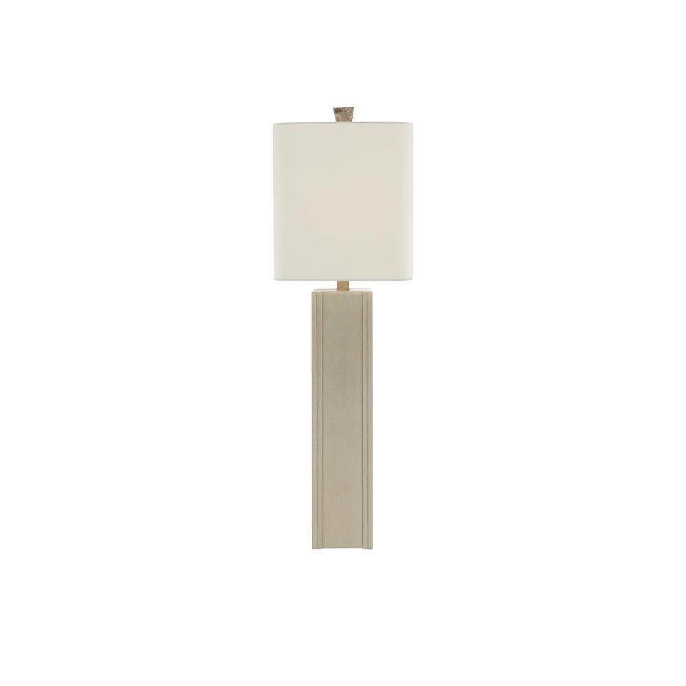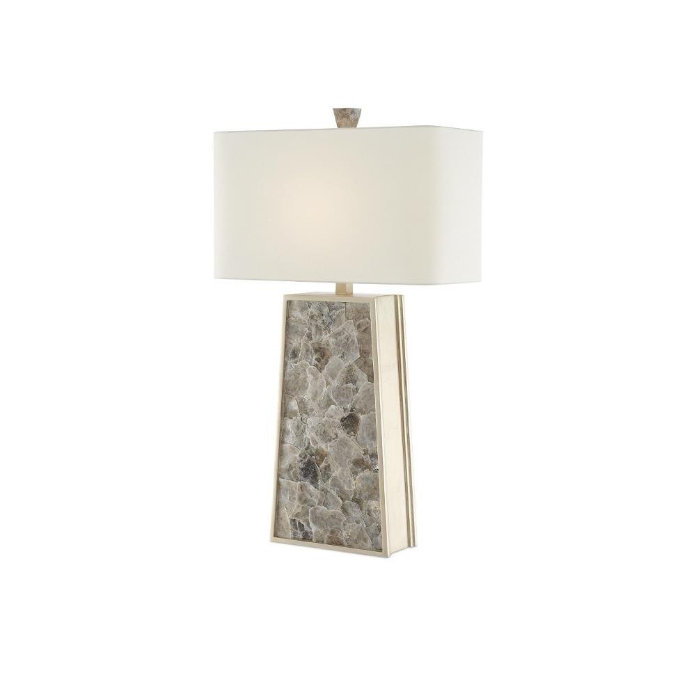 Our Calloway Table Lamp is a remarkable lamp covered in mica in a light mica finish. The natural material is surrounded by a wood frame in a silver leaf finish. A mica finial fastens the off-white shantung shade to the gray lamp to serve as a crowning touch.
