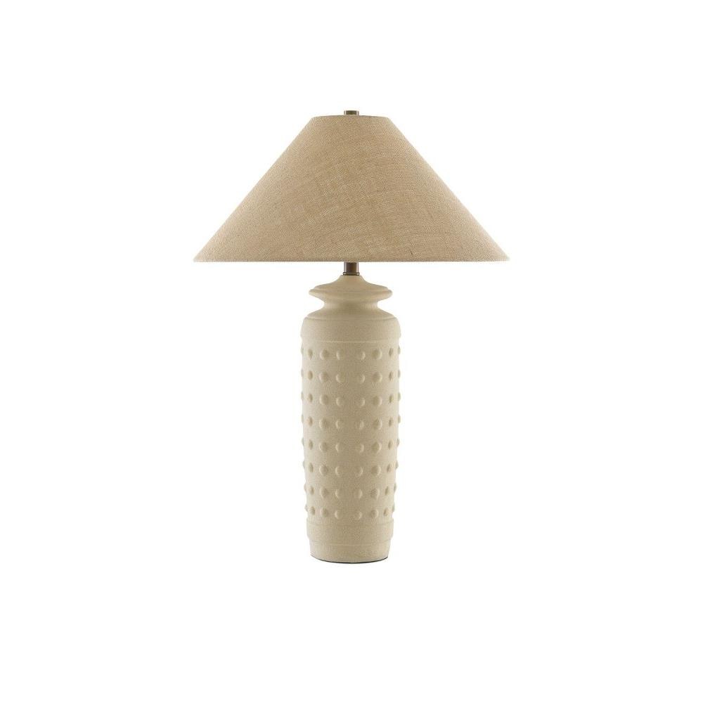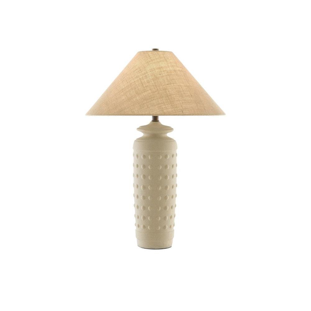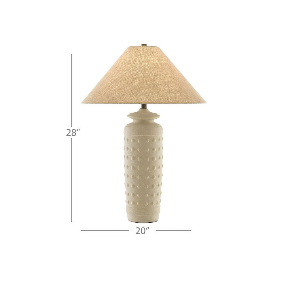 The matte surface of the Sonoran Table Lamp makes this a bisque beauty. Made of terracotta in a sand hue, the ivory lamp has rows of raised circles pressed into its surface. The Sonoran is topped with a natural burlap shade.