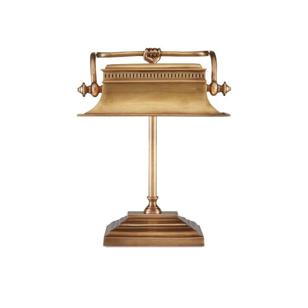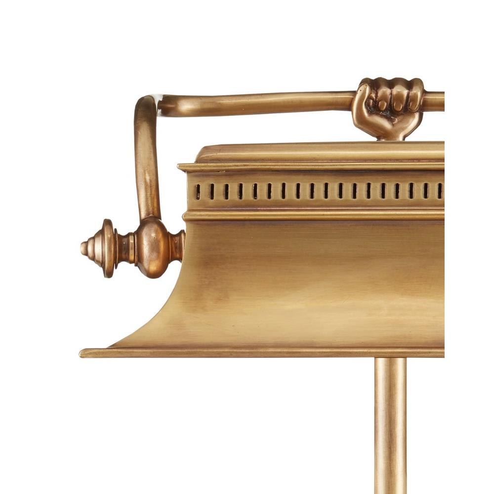Youll need to look closely at the Malvasia Brass Desk Lamp to appreciate its unexpected details that include a classic fluted shade with knob-like fittings, dentil work and a playful hand clasping the tube that affixes the shade to the stem-like body. Included in our Bunny Williams Collection, this gold lamp exudes warmth thanks to the vintage brass finish.