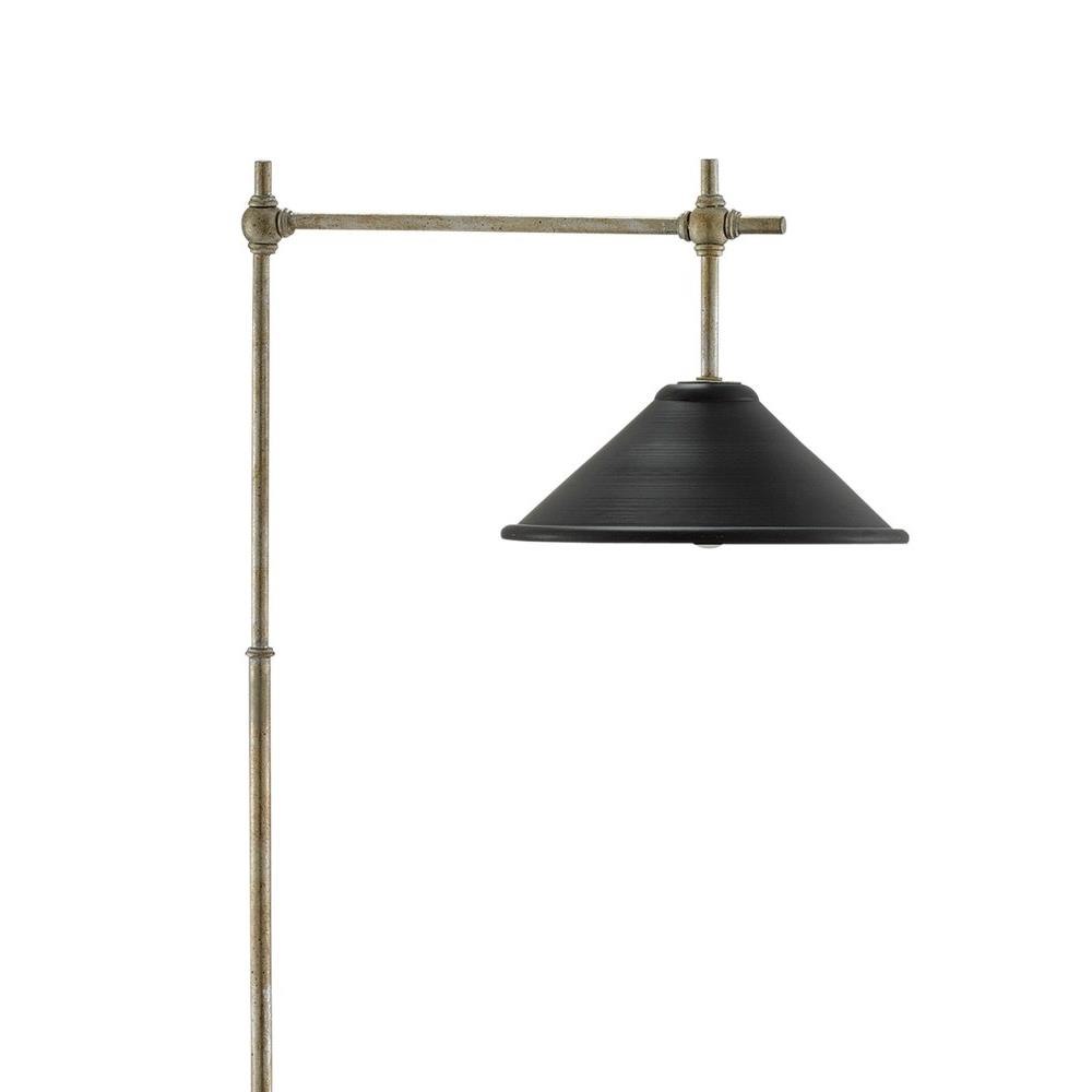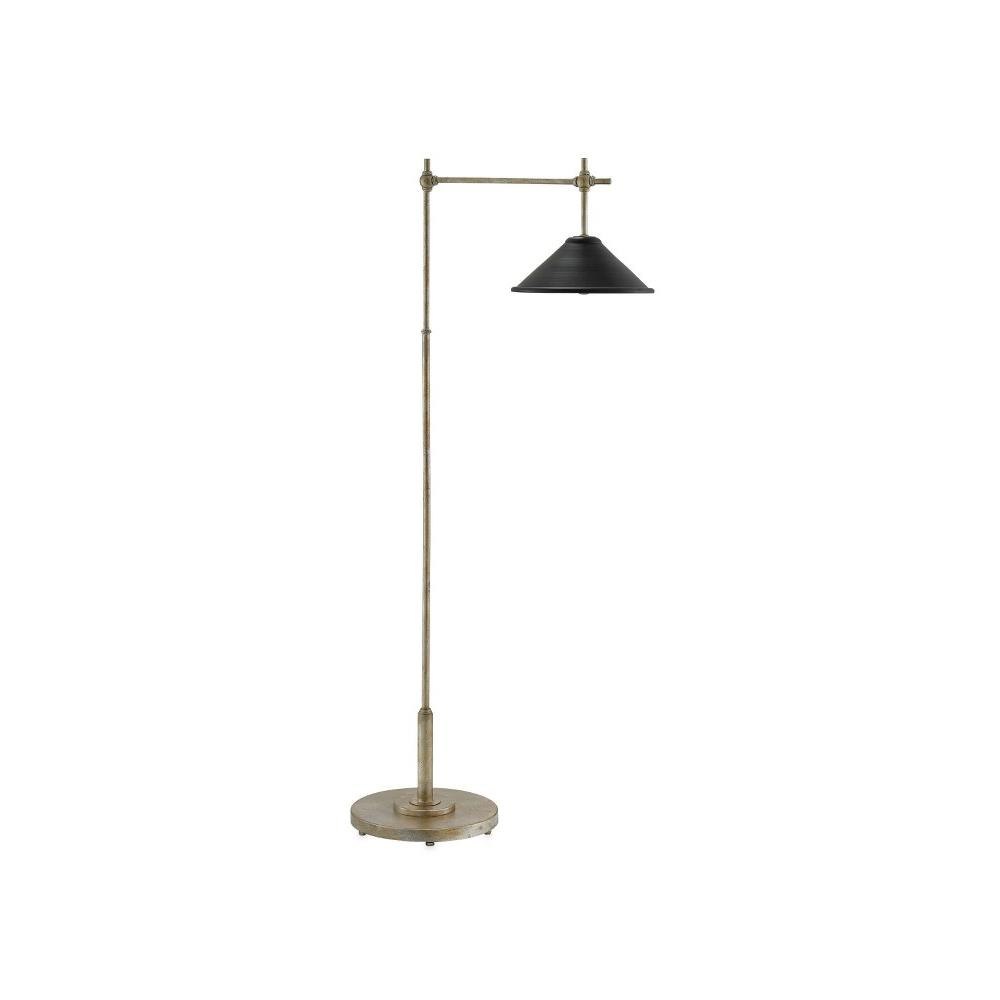 Architectonic with a slight Asian vibe, the Dao Floor Lamp features a weighted base and a slim column joined by knobby globes in a silver Granello finish. The exterior of the tapered shade on this silver floor lamp is finished in satin black, while the interior is in silver.