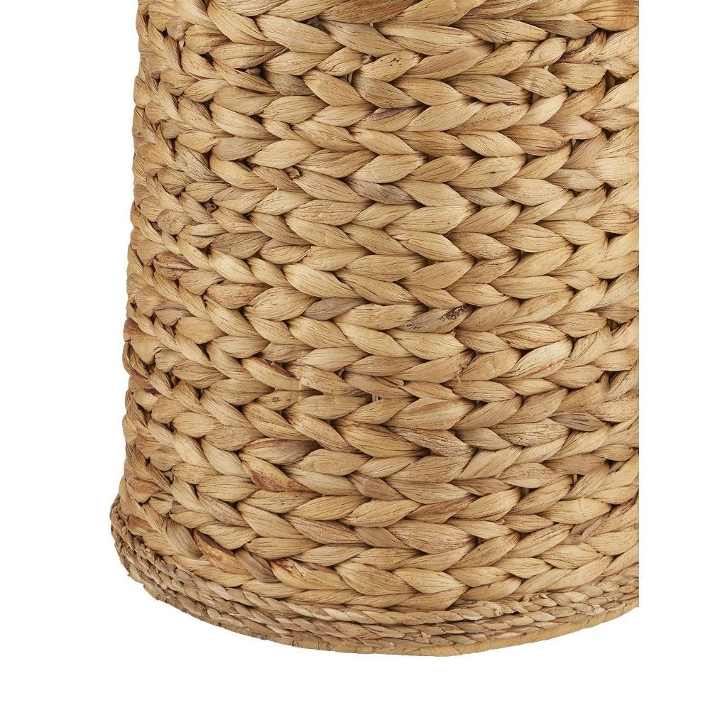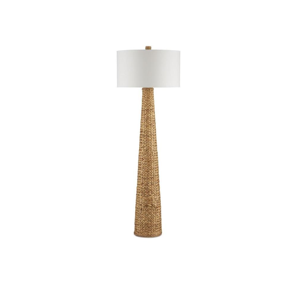 The knobby weave of water hyacinth that covers the Birdsong Floor Lamp takes an artisan a remarkable length of time to achieve to provide the surface with such visual consistency. Designed by Clarence Mallari, the rope floor lamp is statuesque in scale and is a cohesive composition with its finial that matches its body. An off-white linen drum shade adds to the incredible texture this woven floor lamp exudes.