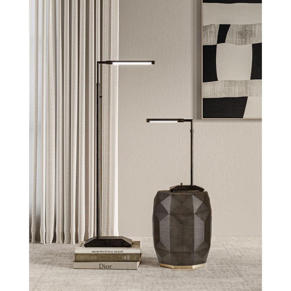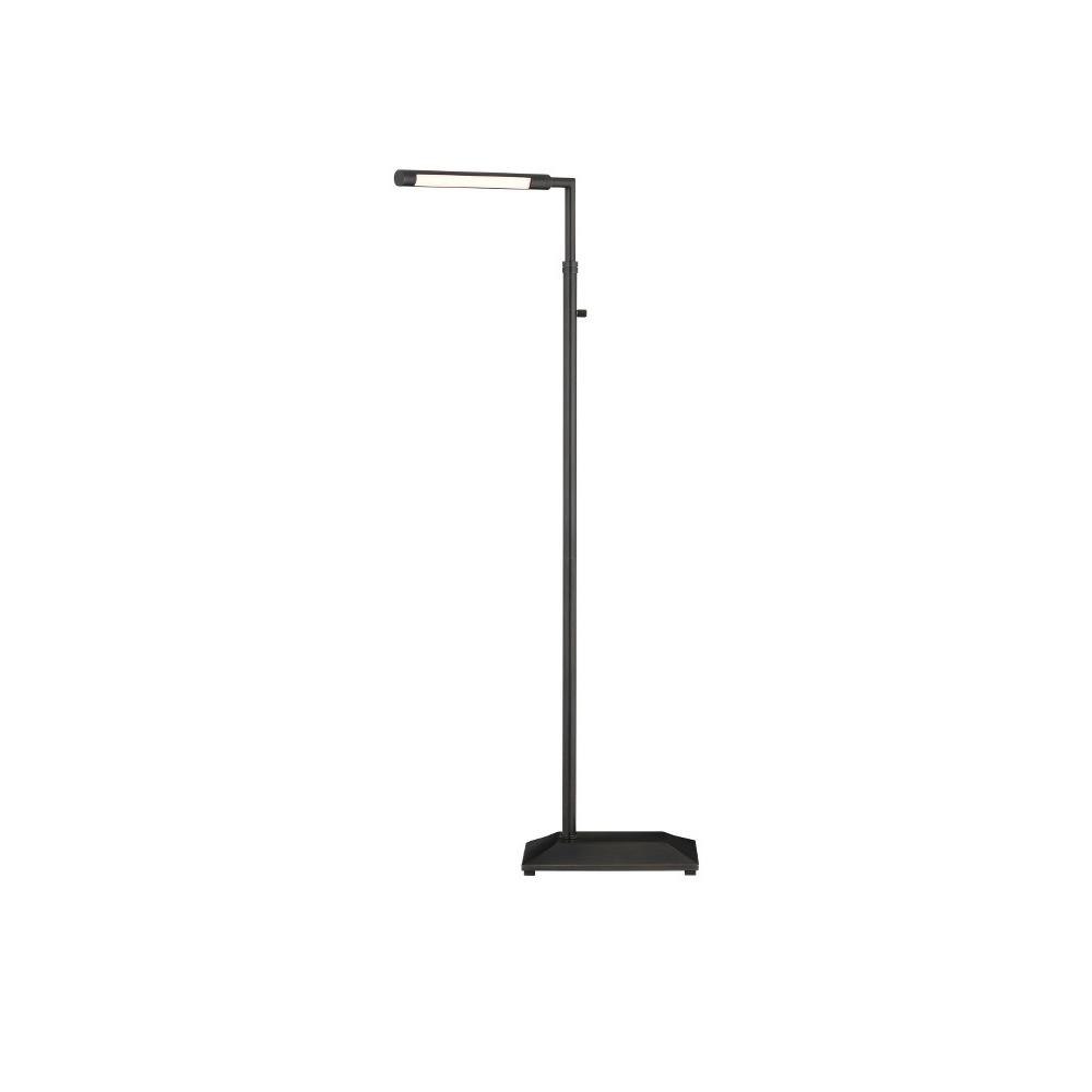 The Autrand Bronze Floor Lamp is a nimble fixture that focuses illumination wherever it is needed most, as it swivels from side to side, and the tubular shade on the top arm can be maneuvered to cast light up, down, or right to left. Made of metal in an oil-rubbed bronze finish, the simple lines of this black floor lamp make it great for any number of interior styles, including contemporary. The fixture has a dimmer switch and is lit with integrated LED technology.