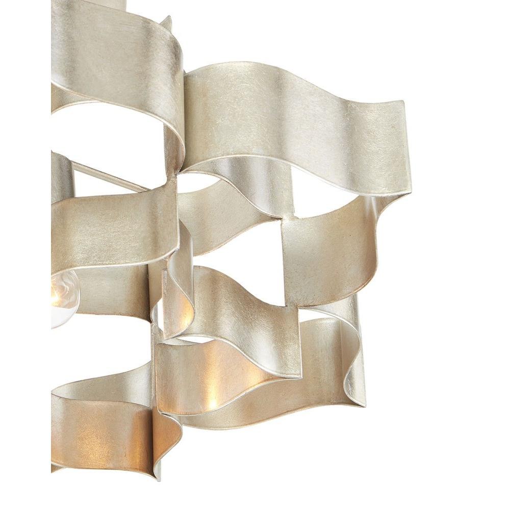 The Grand Lotus Silver Small Chandelier receives its majestic good looks from a combination of stunning workmanship and antique contemporary silver leaf finish. The silver chandelier is skillfully fashioned from wrought iron. We offer this fixture in a number of styles and finishes.