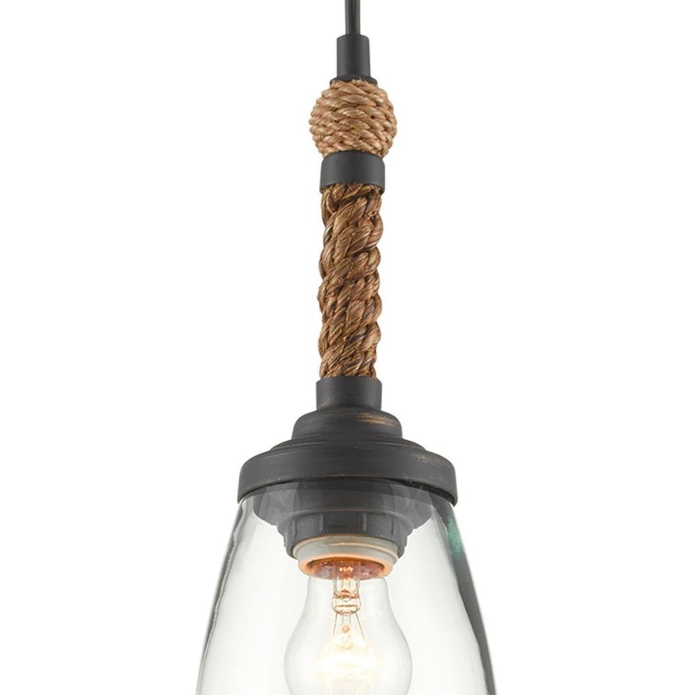 The perfect combination of natural and industrial materials, the Hightider Pendant has a recycled glass shade and wrought iron hardware in a French black finish. The Abac+í rope that is wrapped around the neck of the nautical pendant brings it a hint of texture. Clarence Mallari's original inspiration came from the small bells used by people selling ice cream in the Philippines. We also offer the Hightider as a wall sconce, a multi-pendant and a chandelier.