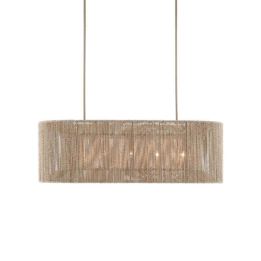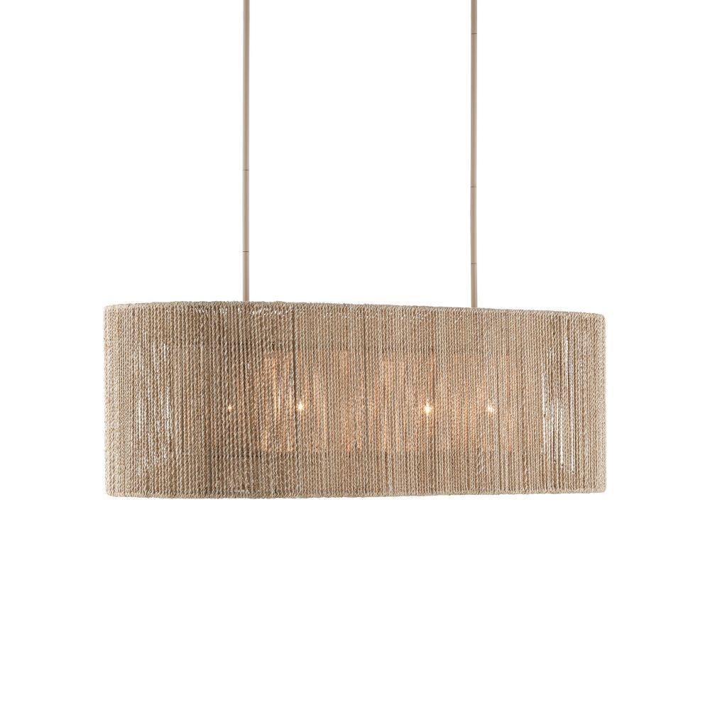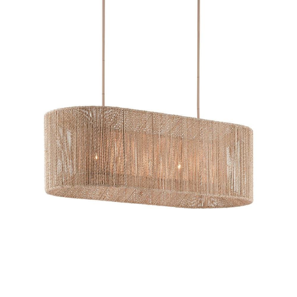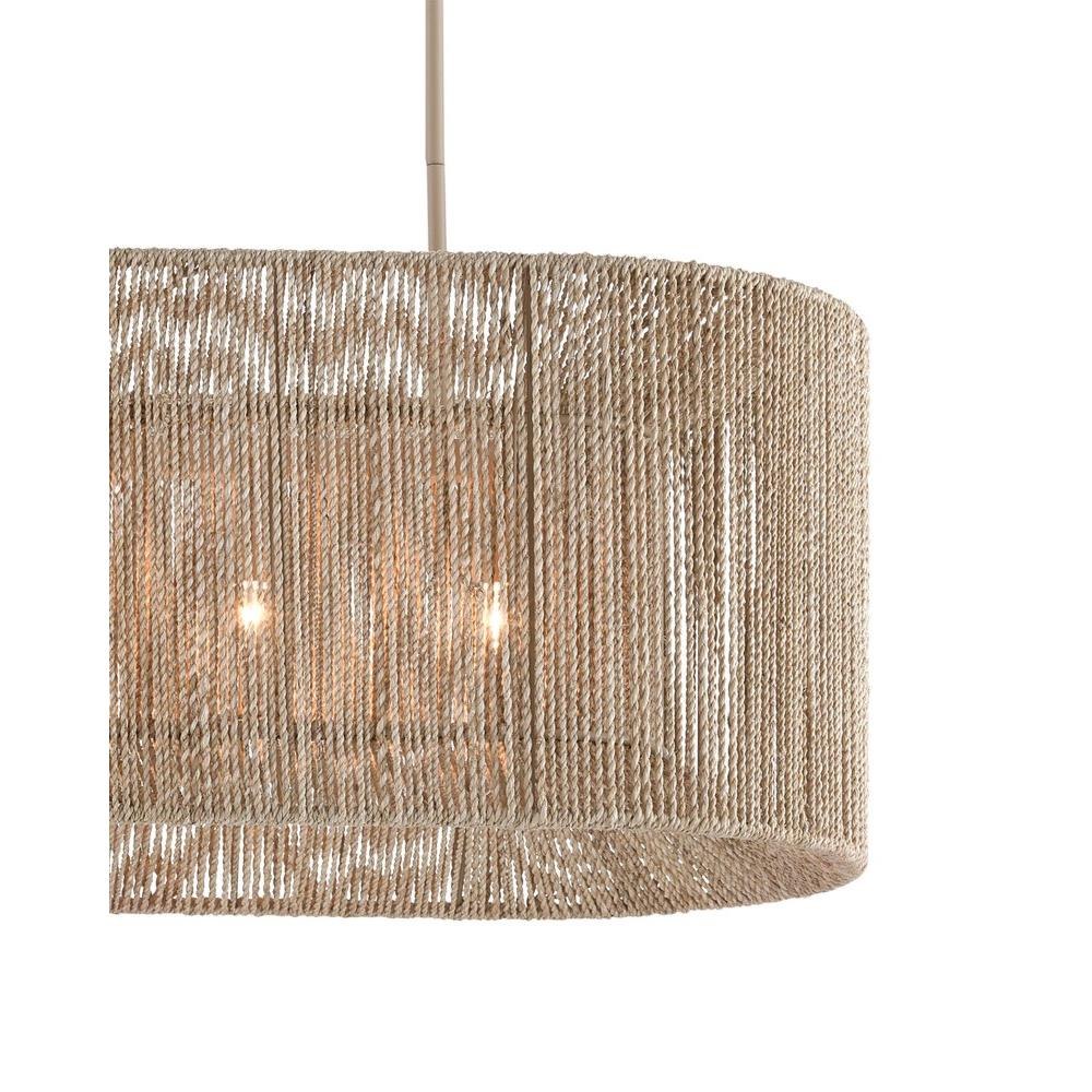 The Mereworth Chandelier has an oblong wrought iron frame around which natural abaca rope has been painstakingly wrapped to create its shade. The rope chandelier emits a warm glow thanks to the color of the abaca. The material also lends the chandelier a nautical feel that makes it perfect for seaside retreats and oceanfront homes.