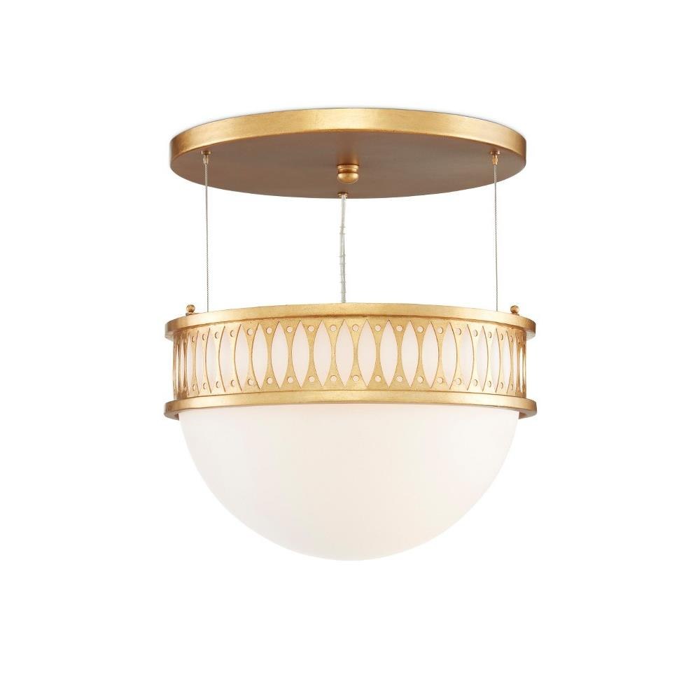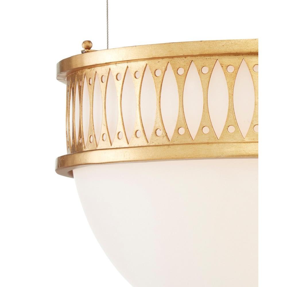 The Lola Pendant is a masterful classic design conceived by Bunny Williams for her lighting collection. The demi-dome has a frame made of square tubing to give the piece a sophisticated cleanness. The smoothness of the milk glass diffuser is equally clean. The aircraft cable is adjustable to easily transition this gold pendant to a semi-flush.