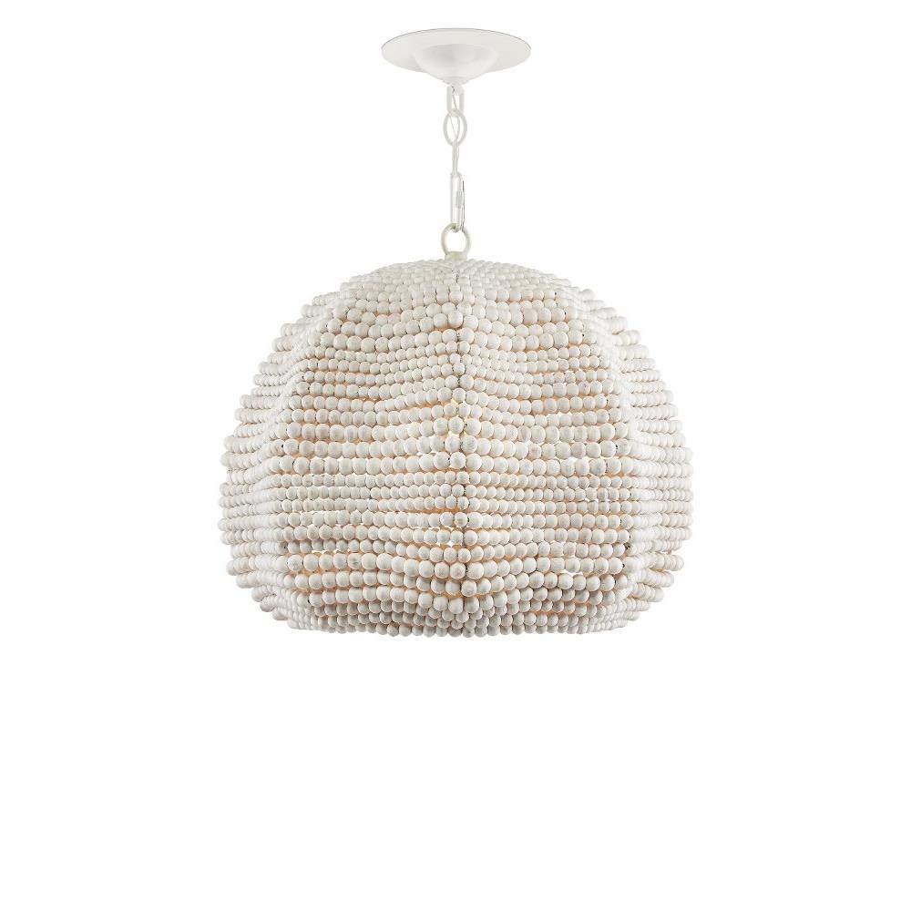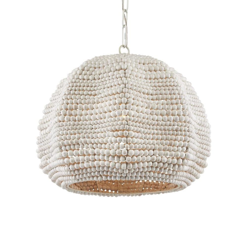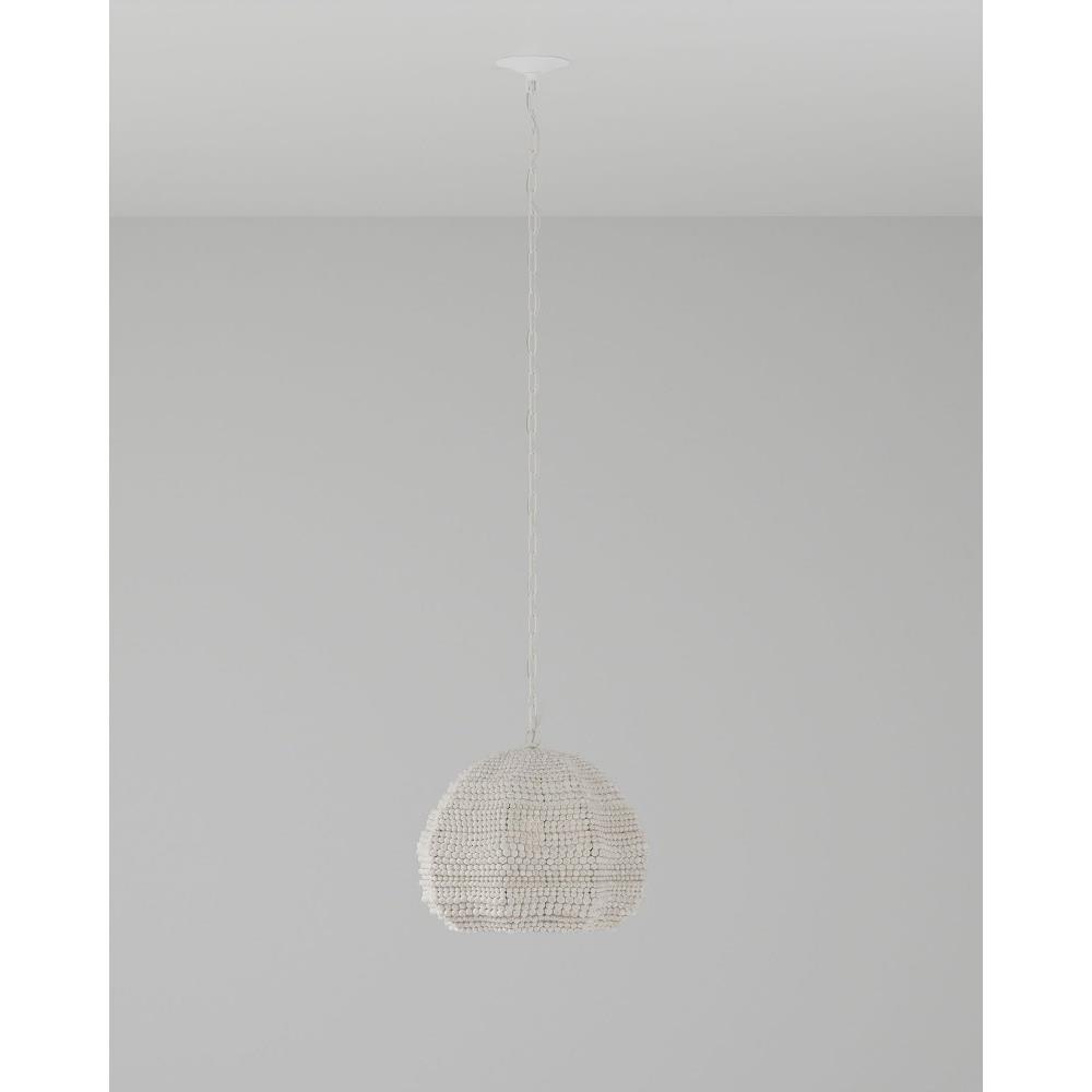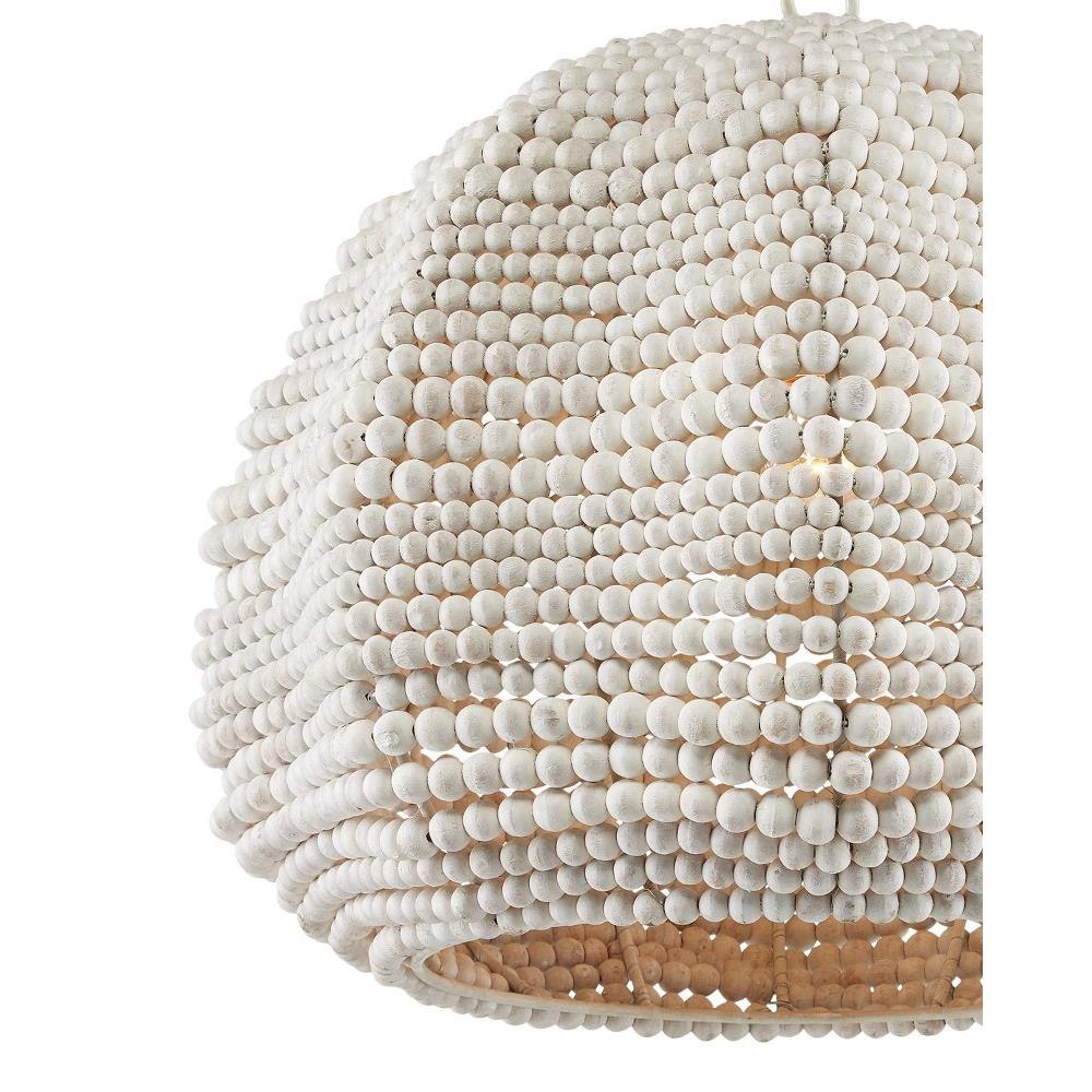 The Octavia Pendant has a flowing profile made of wood beads that have been whitewashed and strung along metal wire so that the shape will remain whimsical. This white pendant fits perfectly within the coastal design aesthetic that is sought after for interiors. The desire for casual elements that hold up to the highest design standards is driving this movement.