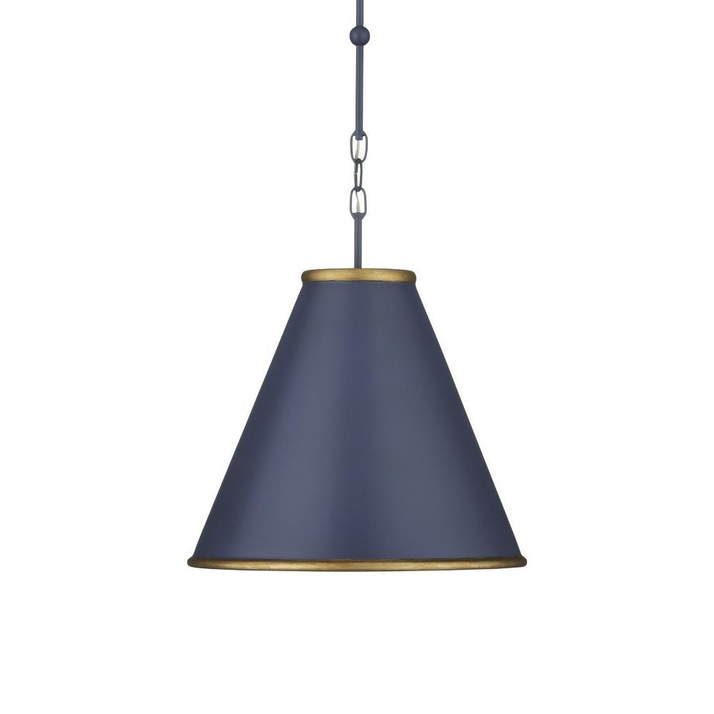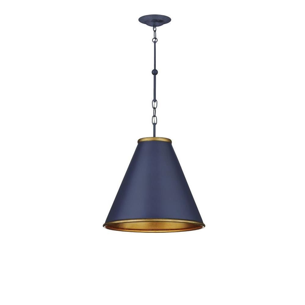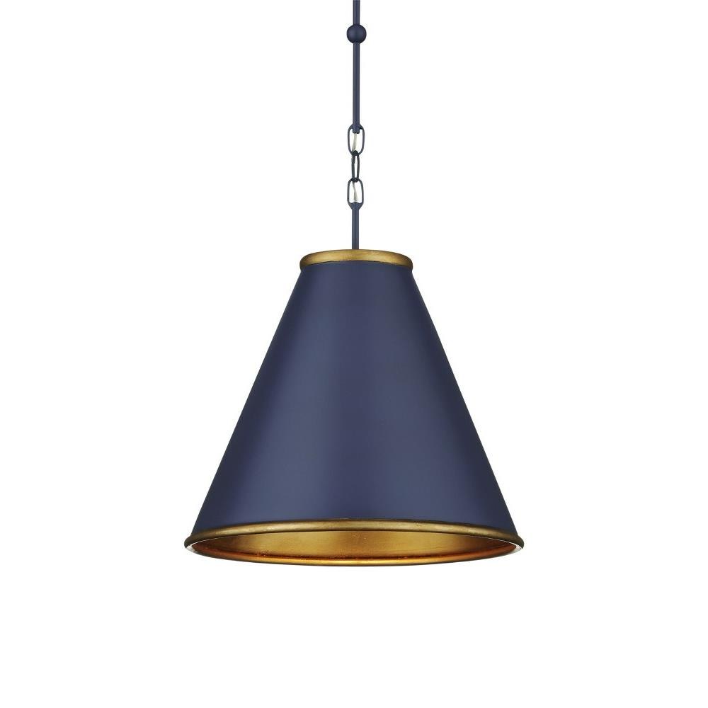The Pierrepont Small Blue Pendant is made of wrought iron with a Hiroshi dark blue finish on its exterior and a contemporary gold leaf finish on the interior of its shade. The rolled edges of the rings connecting them, at the top and bottom of the pendant, gleam in a gold finish and are sophisticated details that bring an uptick in style to this handsome fixture. When simplicity is the aim, the Pierrepont will fit right in given the clean lines of the fixture's profile and its hanging hardware.