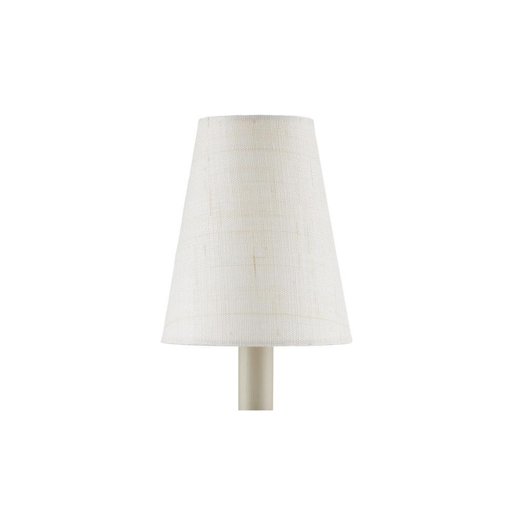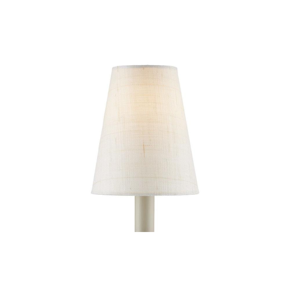Petite shades made of a finely woven grasscloth bring added warmth to a space. Due to the natural material's inherent texture, there is a knotty richness to their surfaces, though the lighter hues are so delicate they read like linen. In fact, the shades for chandeliers and wall sconces in this collection are of the finest weaves made by hand, evidenced by the tiny telltale knots along the surface that prove they are the ultimate definition of artisanal. The shades come in three different weaves, the one with the most texture trimmed in thin bands of cloth and the finer ones culminating with a rolled edge. Both designs exhibit a tailored feel, as you can see from this fine ivory version of the tapered shade. Top Diameter: 3" Bottom Diameter: 5" Height: 6"