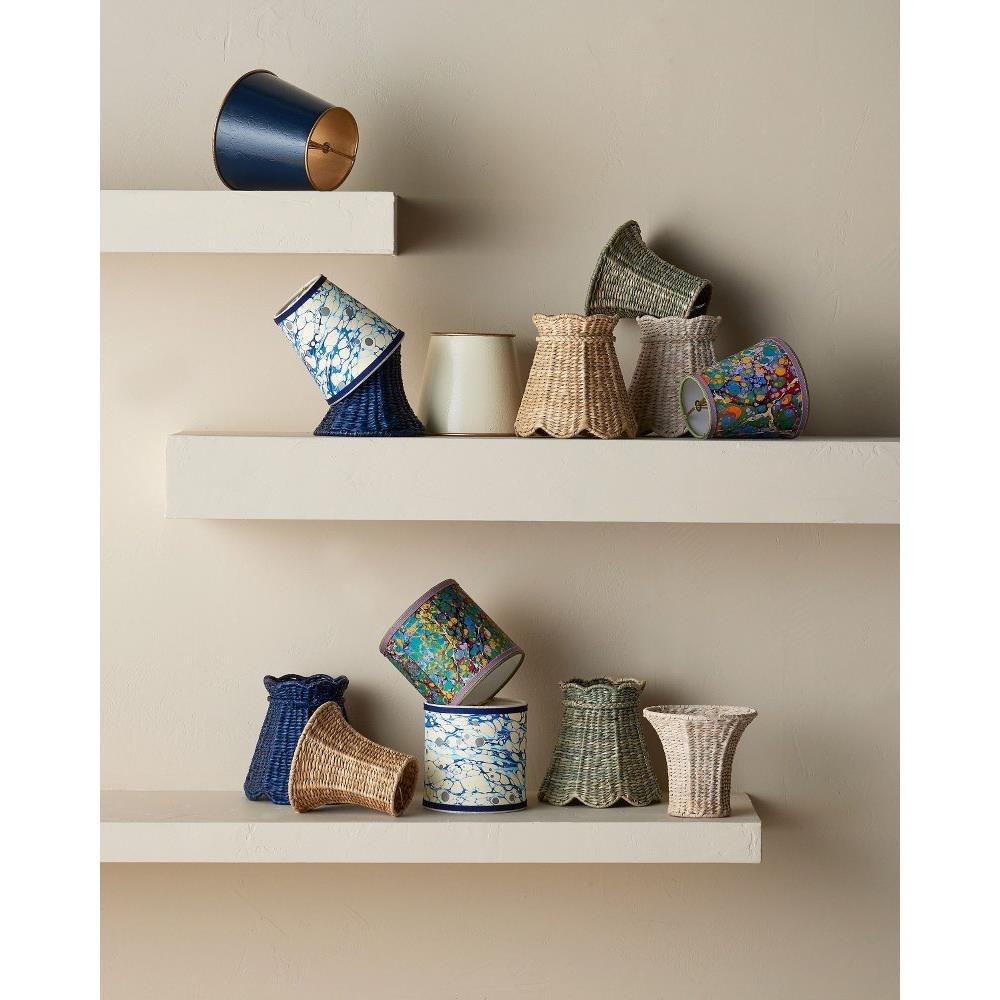 The Annabelle Natural Tapered Chandelier Shade was designed by Suzanne Duin, who founded the Houston shop and design studio Maison Maison. Known for a keen eye in sourcing authentic French antiques and home accessories from around the globe, Duin has created a line of woven products that are handmade by artisans in South Asia. The shade is made of natural seagrass, which brings a textural artistry to each one.