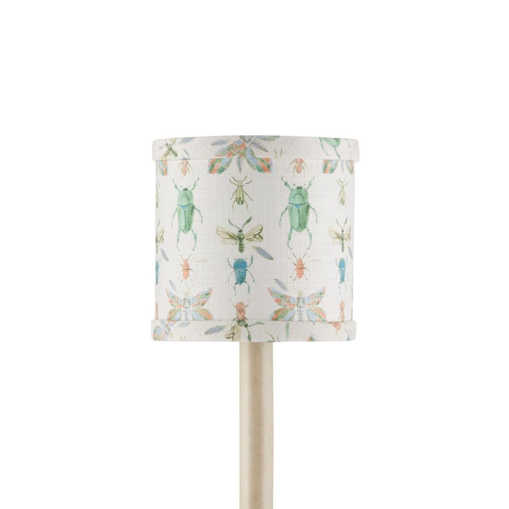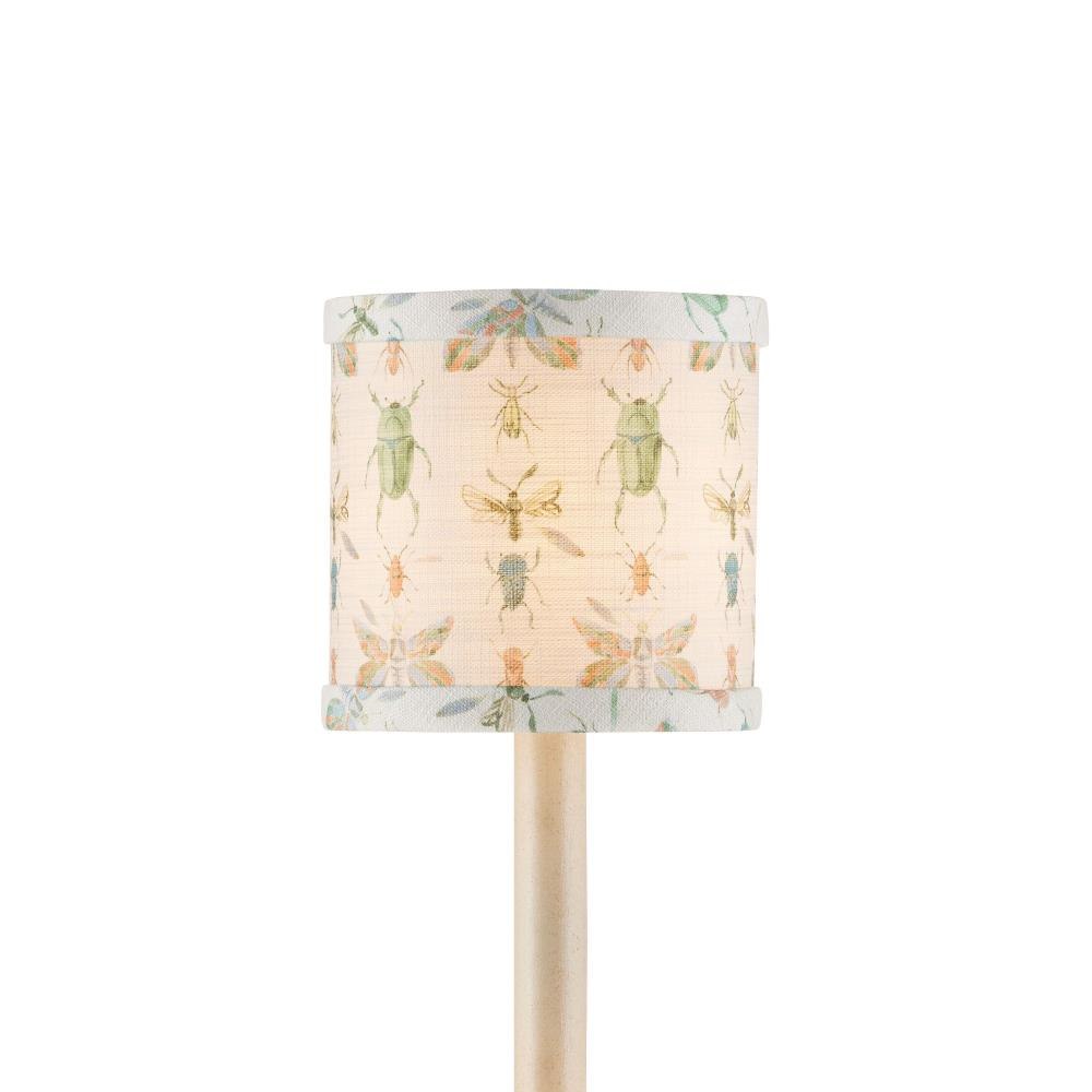 Whimsical bugs and insects lend a colorful touch to this drum-shaped chandelier shade from design partner Lacefield Designs.